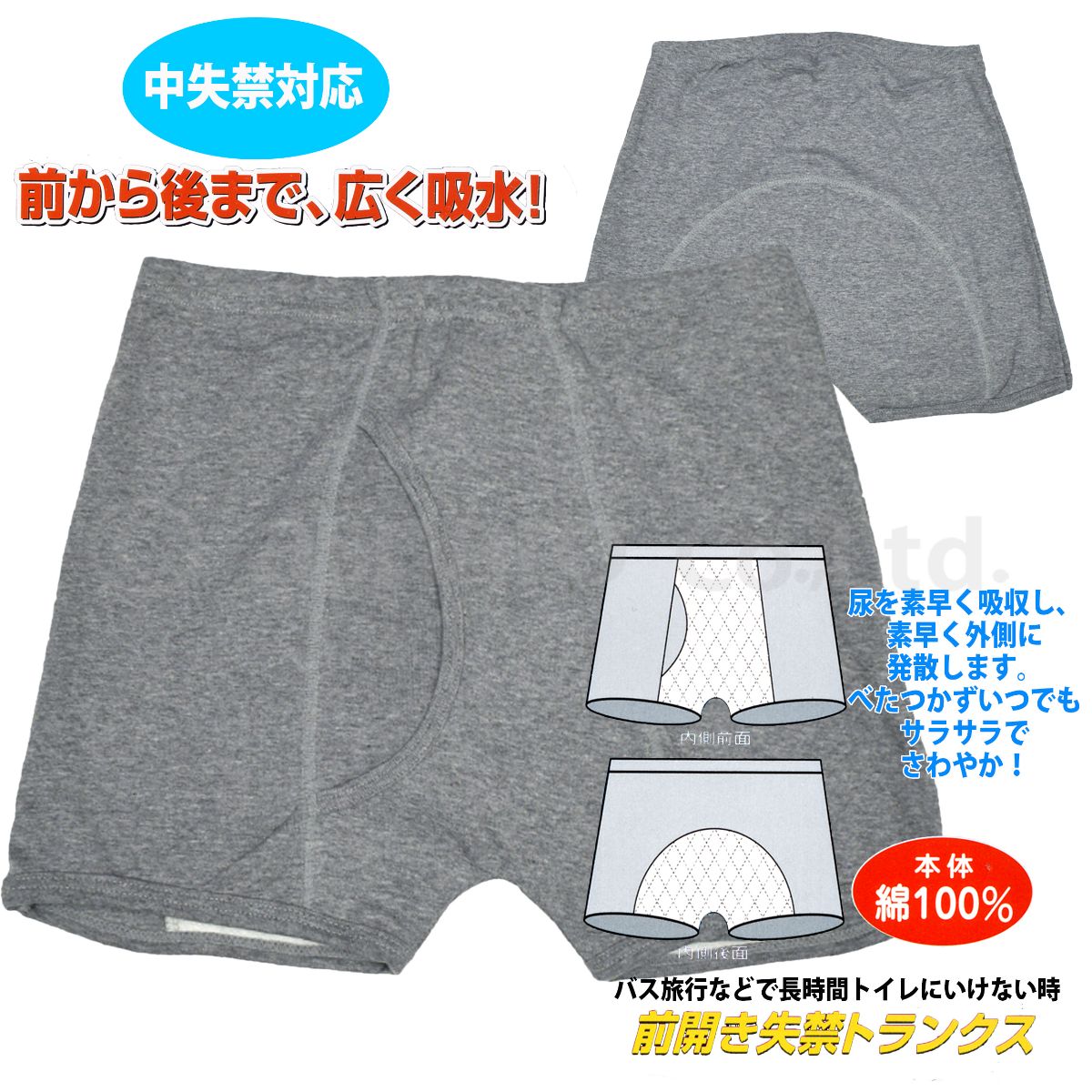 日本製紳士中失禁100cc対応前開き安心トランクスです。