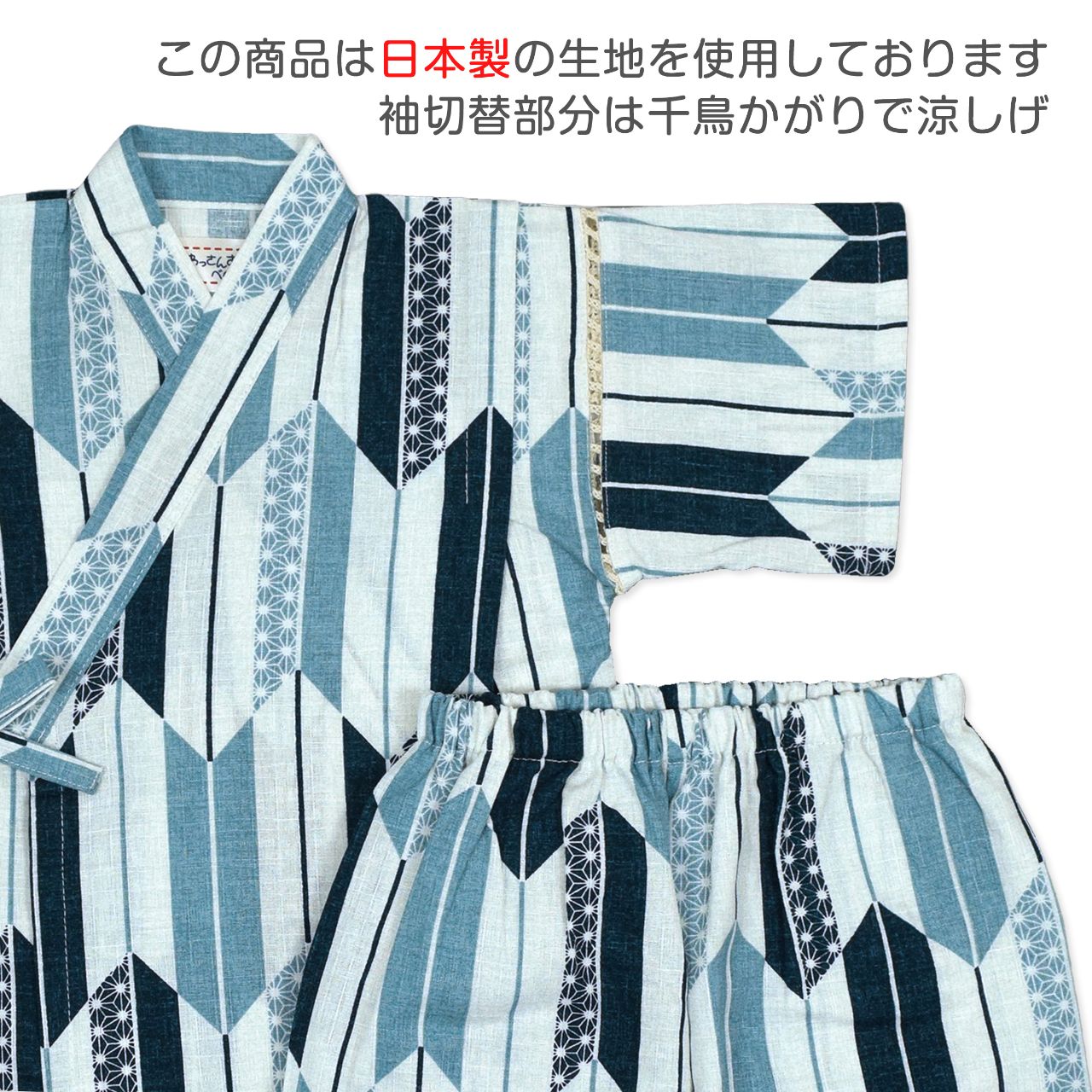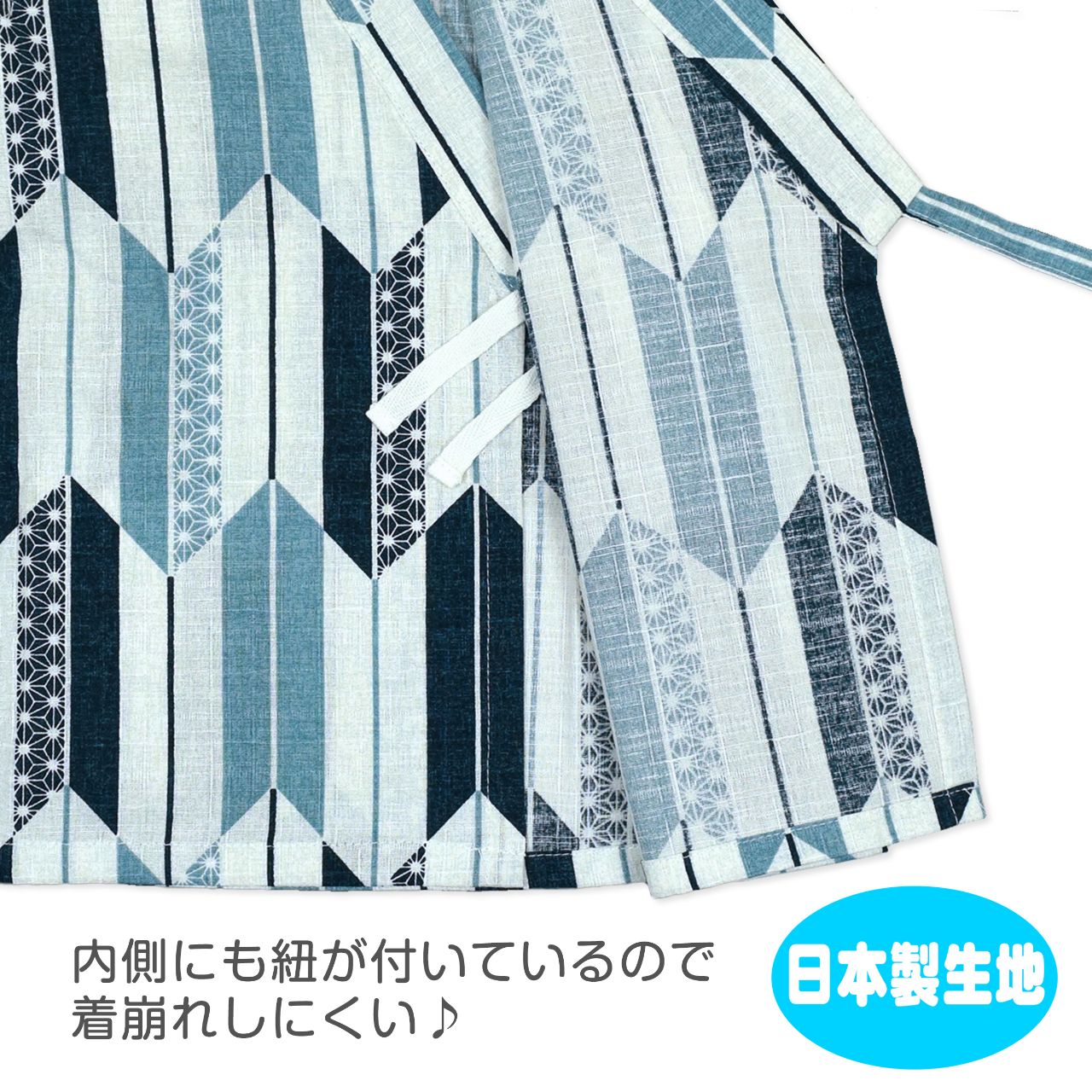 ☆ 商 品 説 明 ☆ 日本製 生地使用 綿100% サザンクロス地 矢絣柄 甚平 。 和風でおしゃれな矢がすり柄の 上下セット です。安心の日本製綿100%生地使用です。トップスは、内側にも紐が付いていて着崩れしにくく、袖の切替部分は、千鳥かがりとなっているので涼し気。パンツのウエストはゴム。パンツ、ウェストはゴム。紐なし。ゴム取換え穴あり。 日本企画・日本製生地使用(縫製中国) *模様や柄の出方は個々の商品によってそれぞれ異なります。