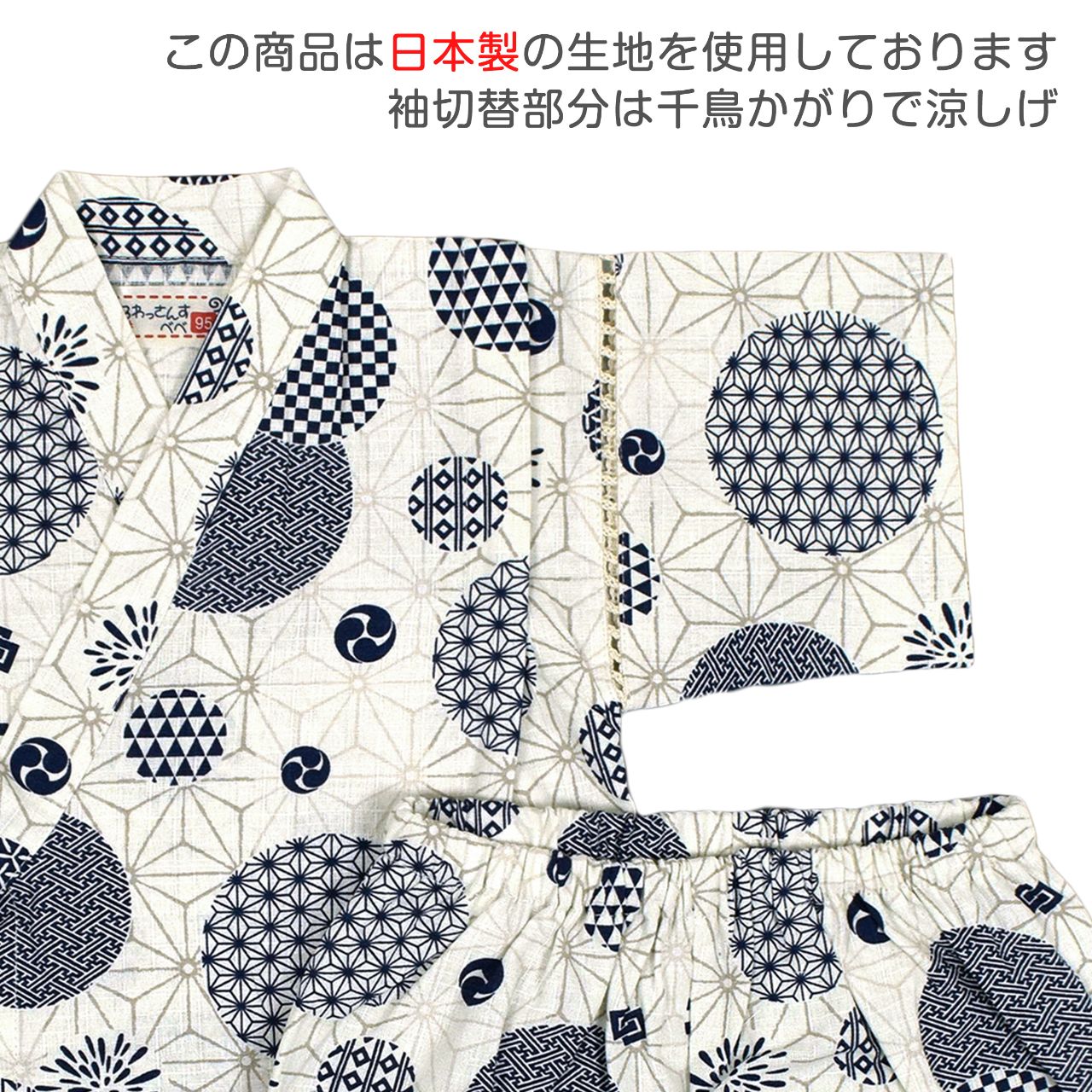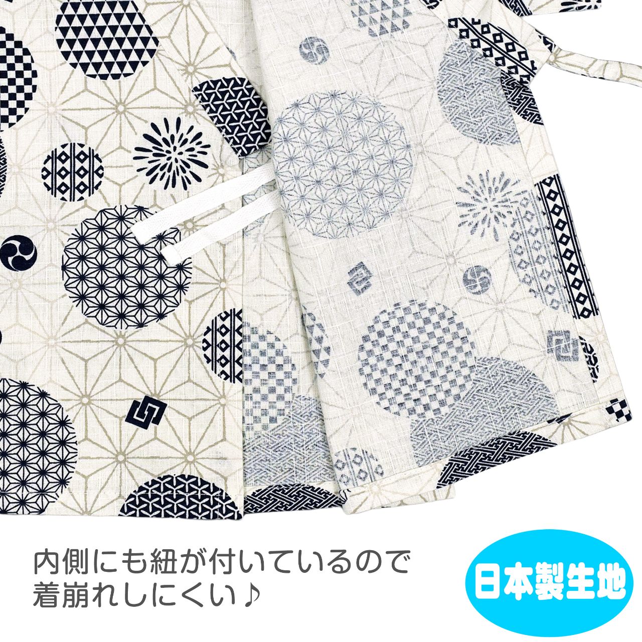 ☆ 商 品 説 明 ☆ 日本製の生地使用 綿100% サザンクロス地 麻柄 水玉 甚平 。 麻柄地に 矢絣 市松模様 の水玉柄がおしゃれな じん平 上下セット です。安心の日本製綿100%生地使用です。パンツ、ウェストはゴム。紐なし。ゴム取換え穴あり。 日本企画・日本製生地使用(縫製中国) *模様や柄の出方は個々の商品によってそれぞれ異なります。