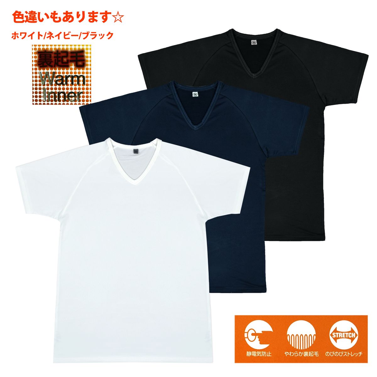 ※ V首シャツ 半袖Tシャツ アンダーシャツ 防寒 寒さ対策