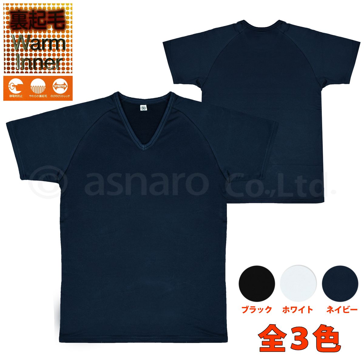 半袖シャツ メンズ Vネック インナー 裏起毛 大人 ○ 商品型番:12-631AS