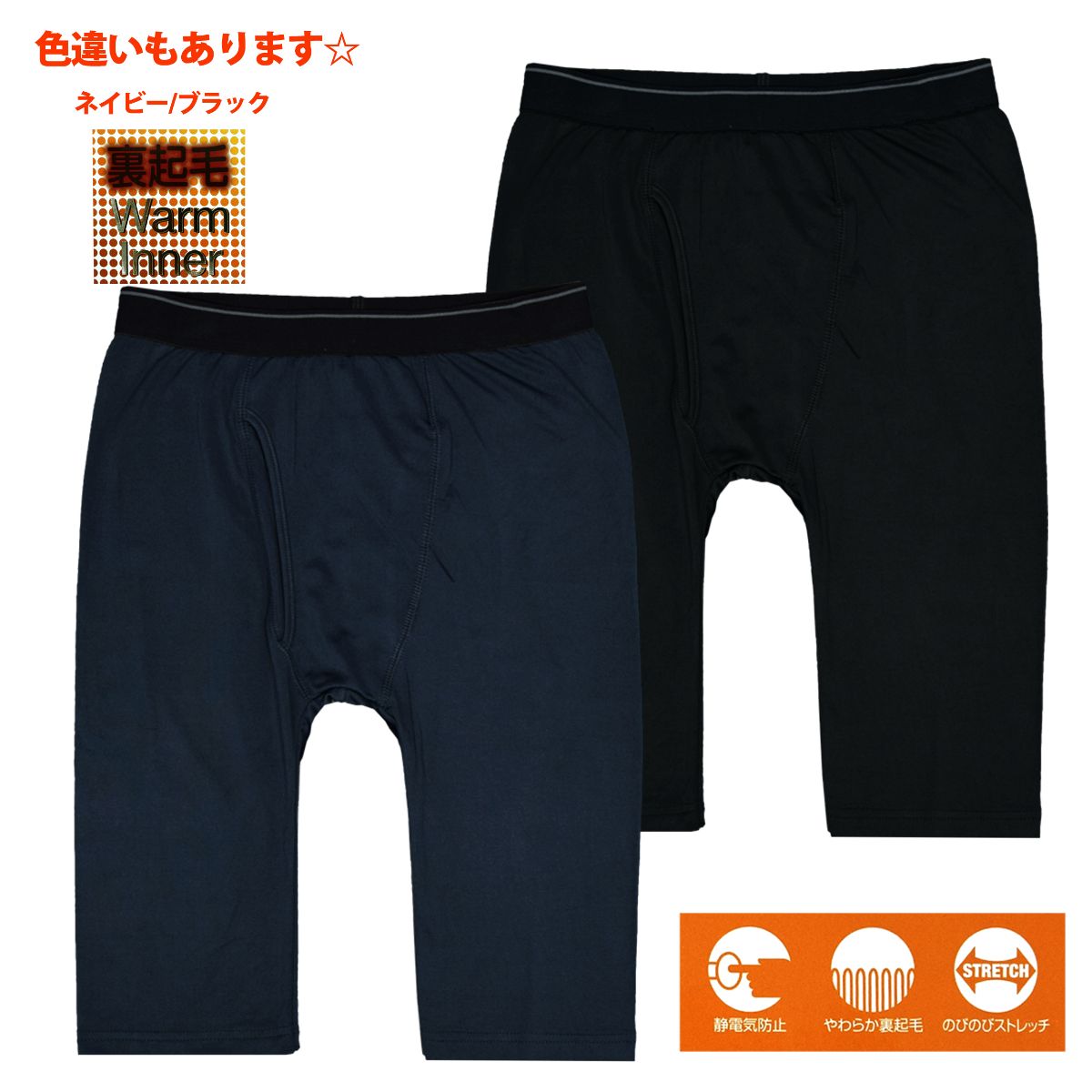 メンズ 裏起毛ストレッチ入り 5分丈タイツ です。
