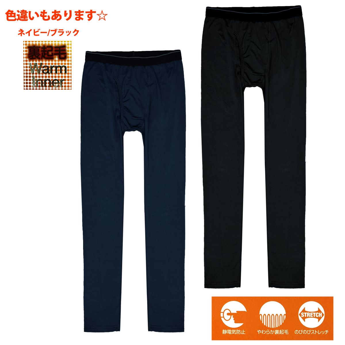 ☆ 商 品 説 明 ☆ メンズ 裏起毛ストレッチ入り 前開き ロングタイツ です。 のびのび ストレッチ 素材、静電気防止加工。 軽くて柔らかマイクロエステル使用。裏起毛で優れた保温性。ウエストゴム。