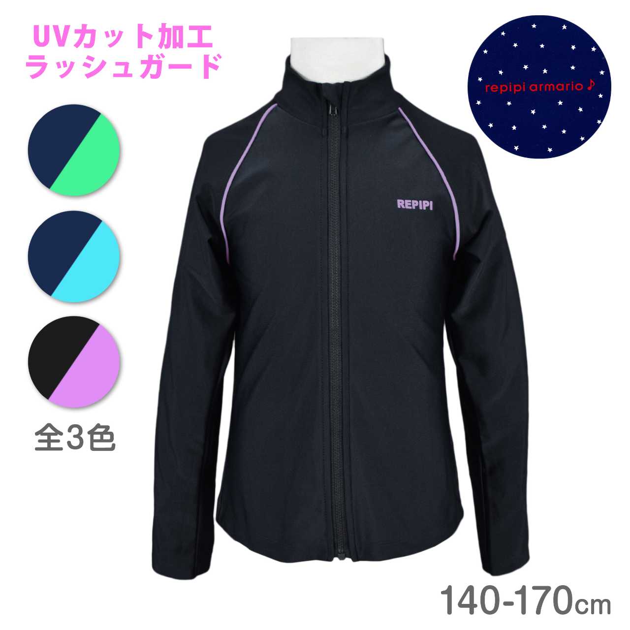 ラッシュガード 長袖 レピピ スクール水着 UV キッズ 子供 女の子 子供水着 ○ 商品型番:124-840AS