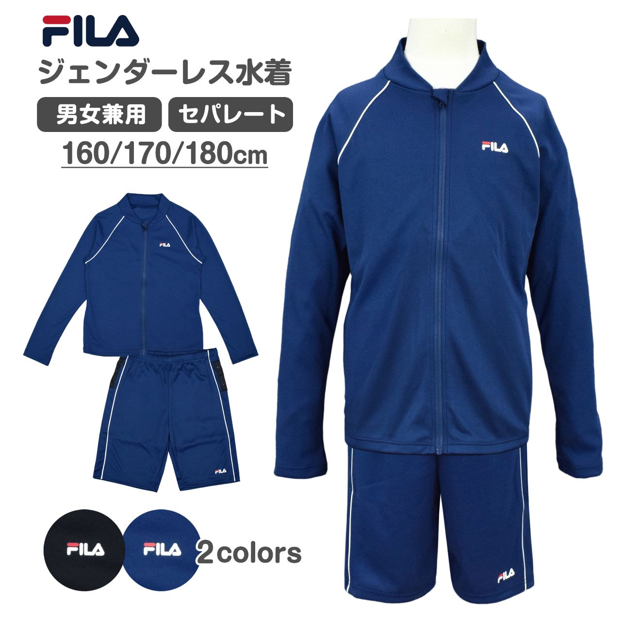 ☆ 商 品 説 明 ☆ FILA フィラ ジェンダーレス 男女兼用 セパレート ラッシュ水着 。 誰でも使いやすいシンプルなデザイン。トップスは長袖 フルジップ ラッシュガード 。前見頃は総裏地付きで胸元が気になるお子様も安心して着ていただけます。カップ取り付け口あり(カップは別売り)。ボトムスは締め付け感が少なく 体型をカバーしてくれるルーズスパッツタイプ 。内側に一体型の ボックスタイプ インナーパンツ付き で安心のフィット感。両サイドについているスナップボタンを留めることにより 捲れを防止し肌見えを防いでくれます。ウエストはゴム ひも付き。 この商品は、JISL4129 (子供服の紐の安全規格)を尊守しておりウエストの紐を後ろ中心で縫い留めてあります。