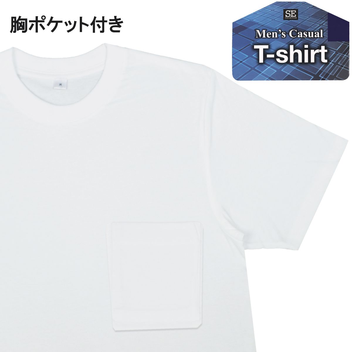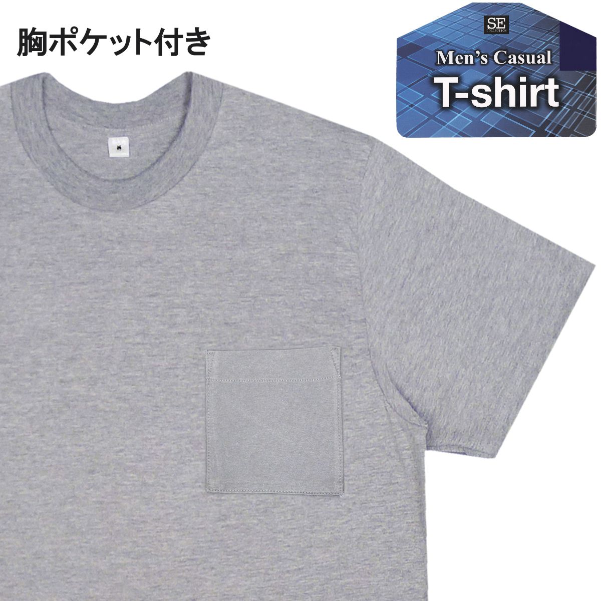 メンズ ポケット付 丸首半袖Tシャツ です。