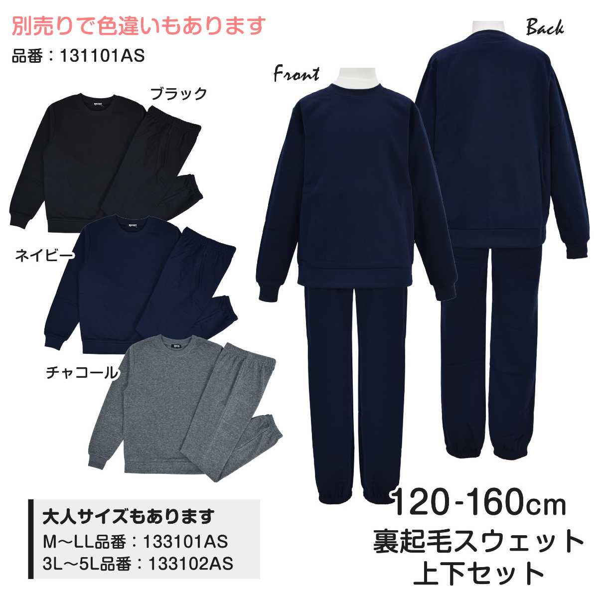 ☆ 商 品 説 明 ☆ 裏起毛で暖かいトレーナー パンツ スーツ 上下セットです。 無地でシンプルなカラーなのでパジャマやルームウェア、お泊りや林間学校などの行事。 単品使いもできて、さまざまなスタイルが楽しめる万能アイテムです。 襟元はリブ素材で伸縮性があり着脱もらくらく。 足首はゴム仕様で、裾のめくれがなく暖かです。 パンツはウエストゴム。ゴム取り換え穴なし。 ポケットはパンツの後ろに1つ。 ※洗濯表示をよくお読みの上お取り扱いをお願い致します。