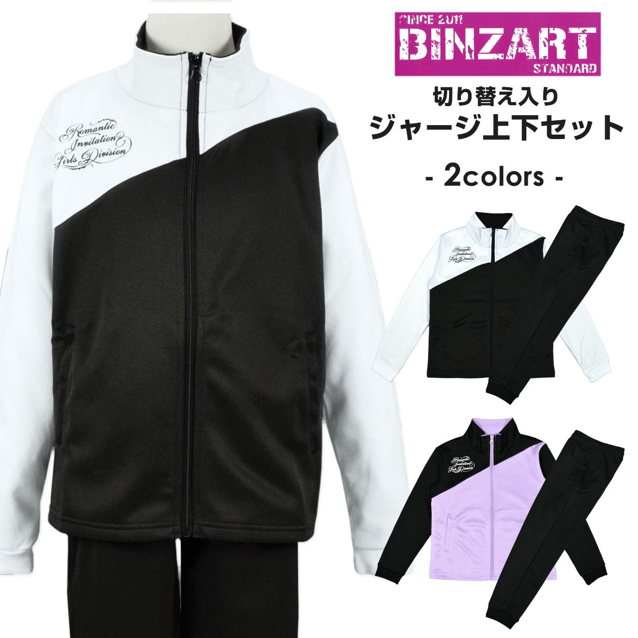 ☆ 商 品 説 明 ☆ Binzart バンザート 切り替え ジャージ上下セット。 切り替えがおしゃれな トレーニングウェア 上下セット です 。ジャケットは前開きファスナー仕様 胸元ロゴプリント入り。パンツはウエストゴム、ゴム取り替え穴なし、紐付き。裾はリブ使いの ジョガーパンツタイプ 。ジャケット、ボトムスに各2つポケットあり。