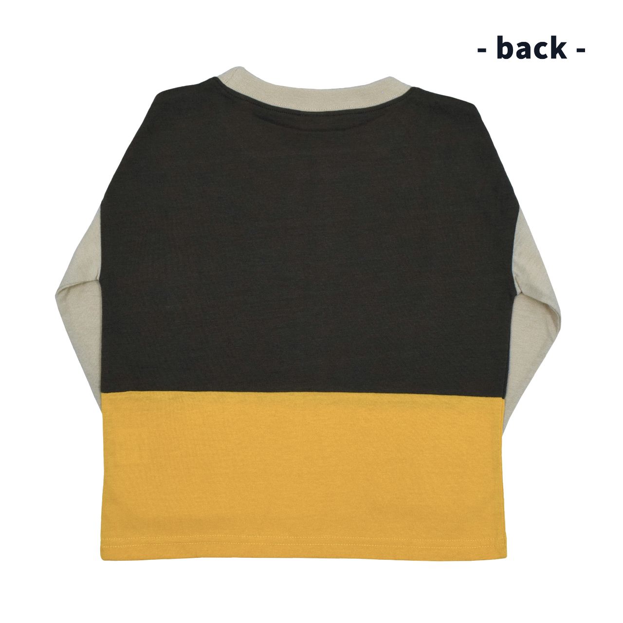 ゆったりシルエット 切替入り 長袖Tシャツ。