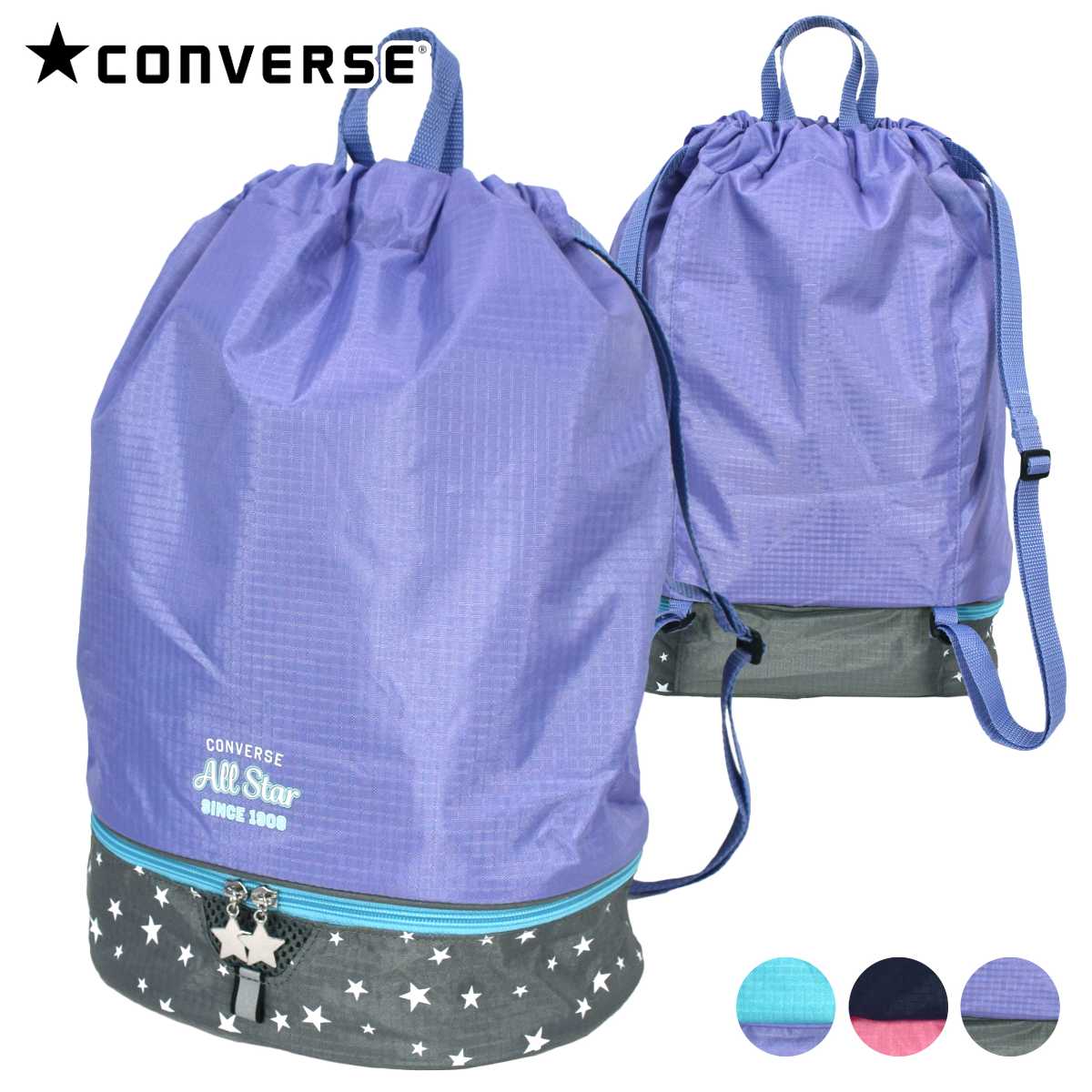 ☆ 商 品 説 明 ☆ CONVERSE コンバース ボンサック プールバック です。 コンバースのロゴや星柄が 可愛い 二重底のカバンです。 2層に分かれた収納スペースで、濡れたり汚れたものなどを分けられます。底部分の収納はダブルファスナーで開閉しやすく、メッシュ素材の通気孔付きで蒸れにくくなっています。通気孔下にはリフレクター付き。小さな 持ち手 がついているので机のフックにも掛けられます。ショルダー はアジャスター付きでお好みの長さに 調節可能。内側に名前が記入できるネームタグ付き。