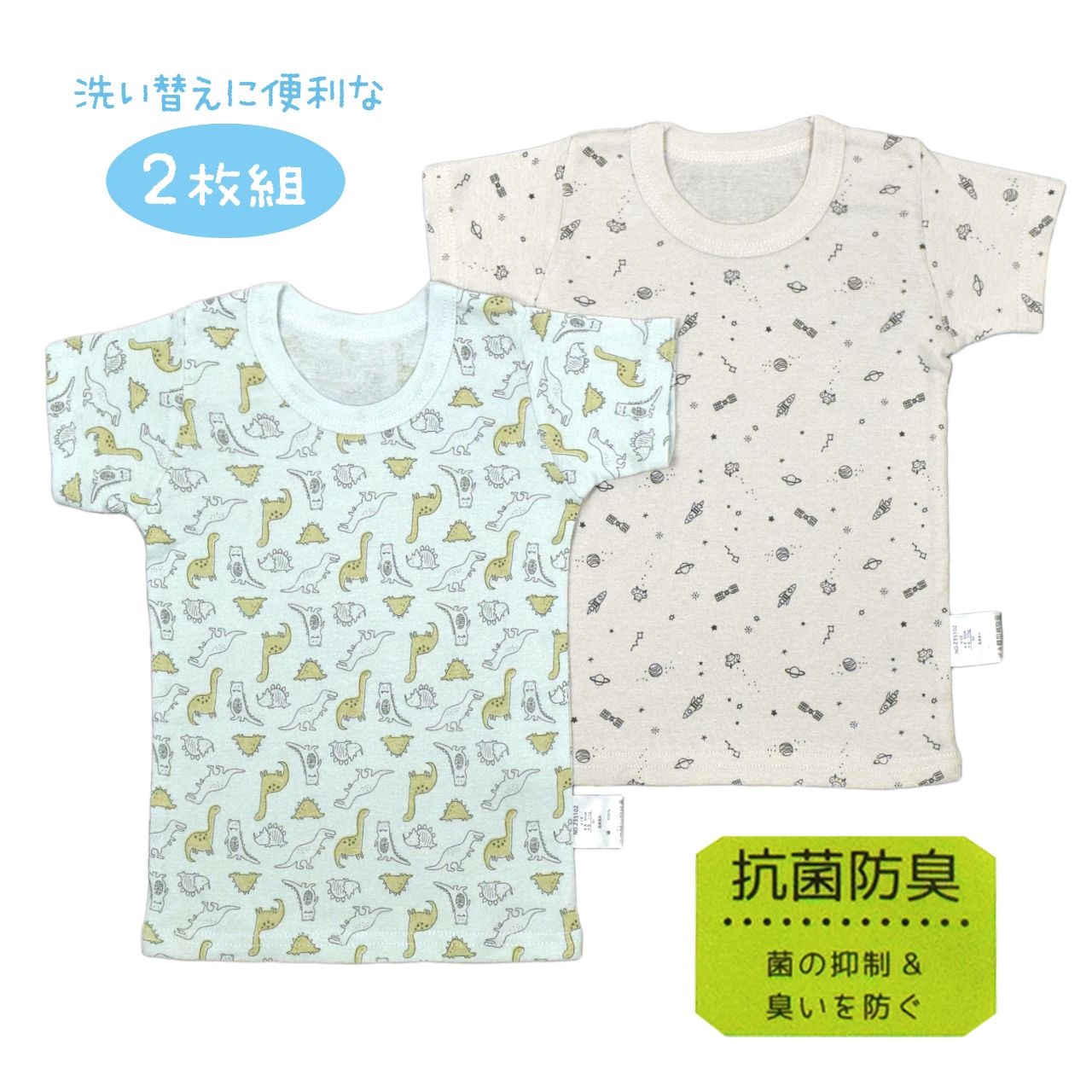 ☆ 商 品 説 明 ☆ 抗菌防臭 綿100% 柄違い 半袖シャツ 2枚組 。 恐竜 ロケット 柄違いの 半袖Tシャツ です。菌の抑制、臭いを防ぐ抗菌防臭。2柄 2枚セット なので洗い替えにおすすめです。着丈は 長めでおなかや背中が出にくい安心丈。綿100%素材でお肌にやさしく、やわらかな肌触りでいつでも快適な着心地。 洗濯表示のタグはお肌に触れない外付け仕様。 ※ 別売りのボクサーブリーフ 品番 235113AS