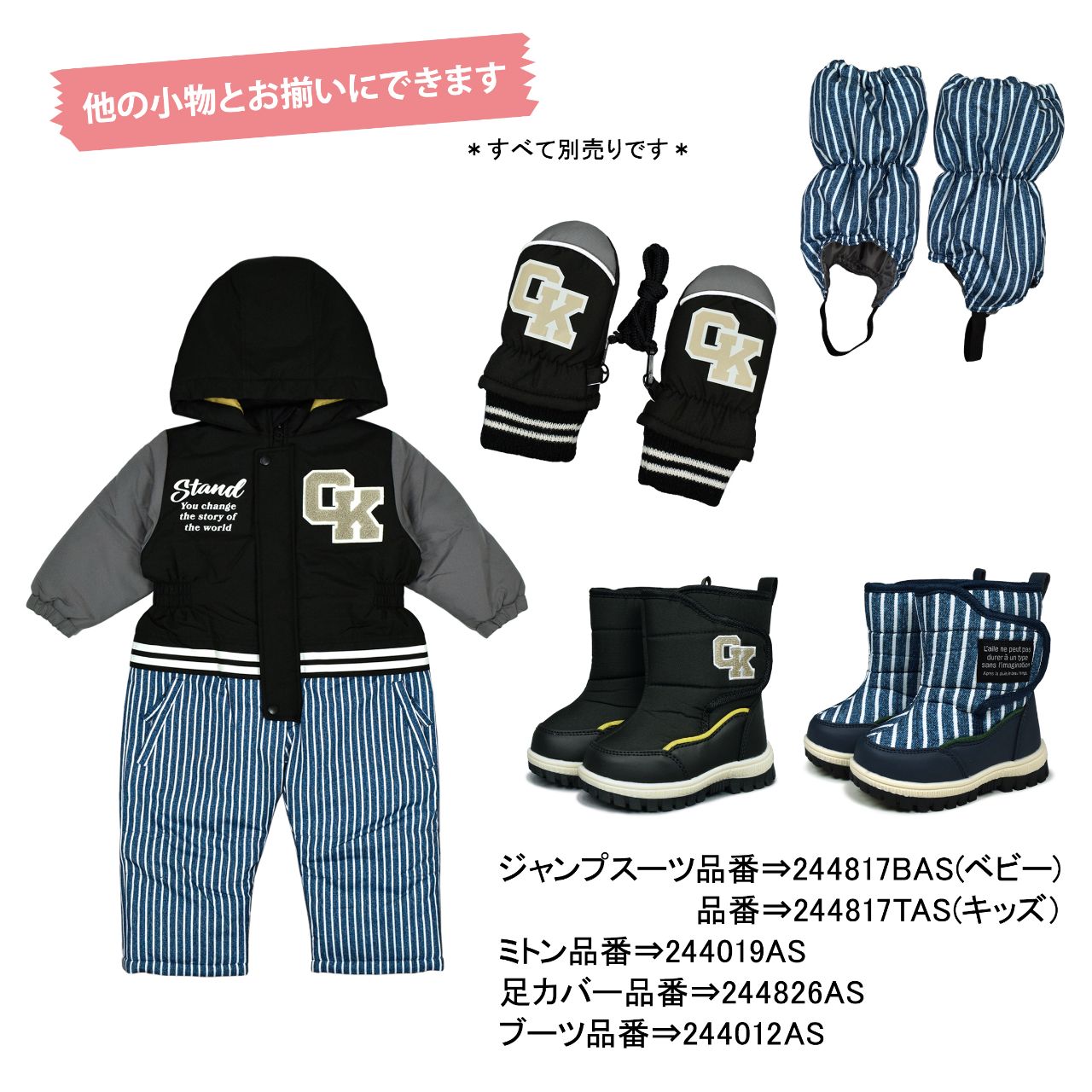 スノーミトン キッズ ベビー 子供 男の子 ひも付き 裏ボア あったか グローブ ○ 商品型番:244019AS