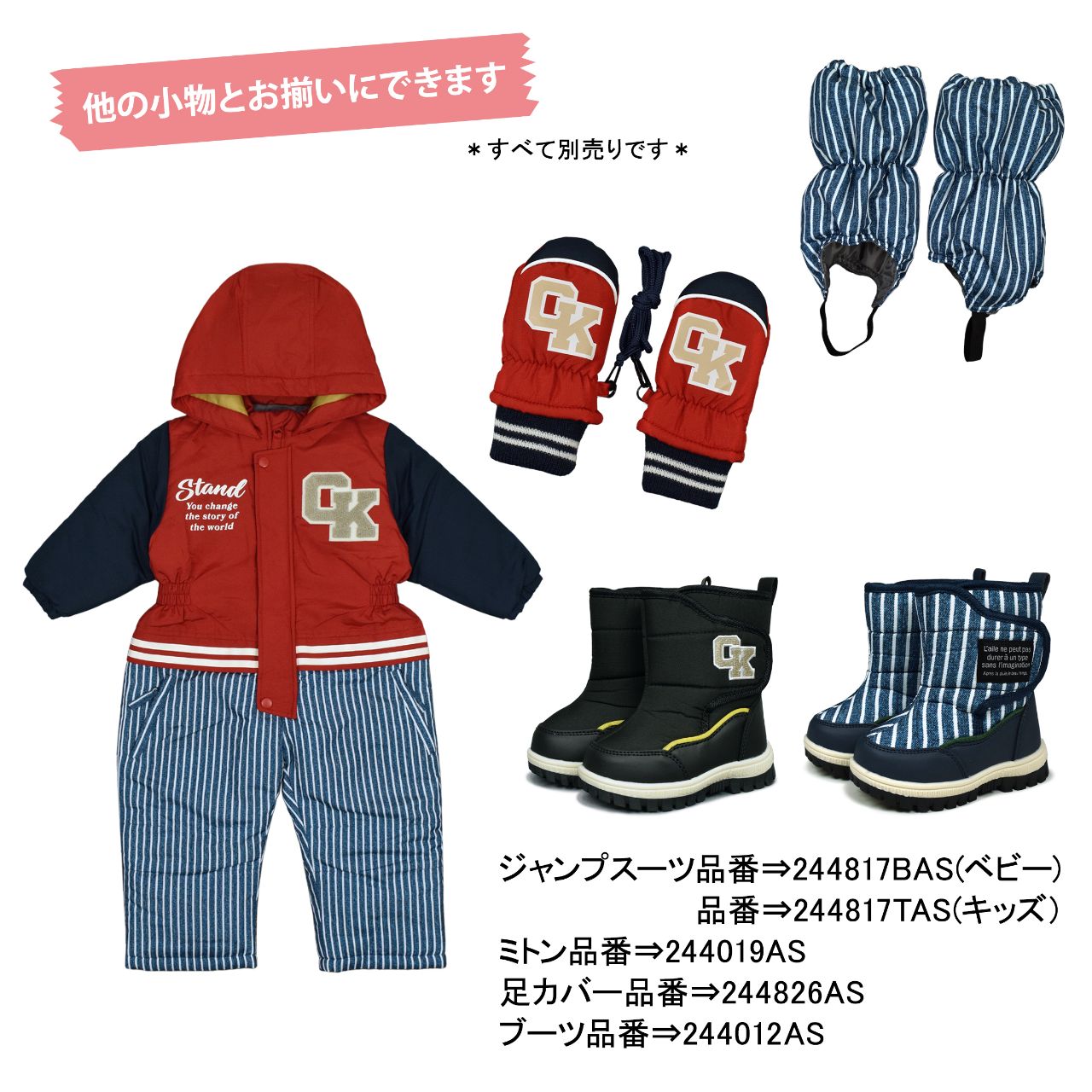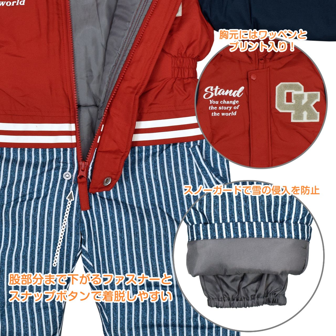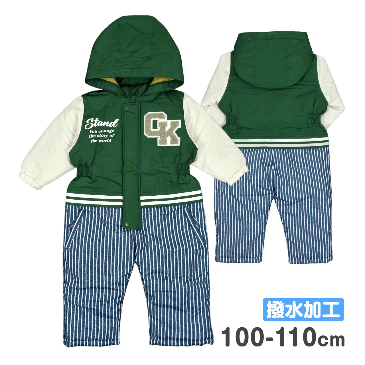 スタジャン風 ジャンプスーツ キッズ 男の子 子供 撥水加工 綿入り 防寒 ○ 商品型番:244817TAS