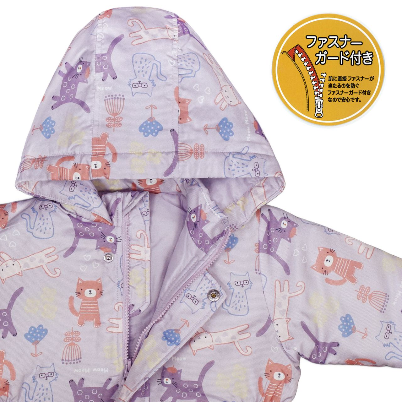 ジャンプスーツ 綿入り ねこ柄 撥水 ベビー キッズ 子供 女の子 スノーコンビ ○ 商品型番:254805BAS