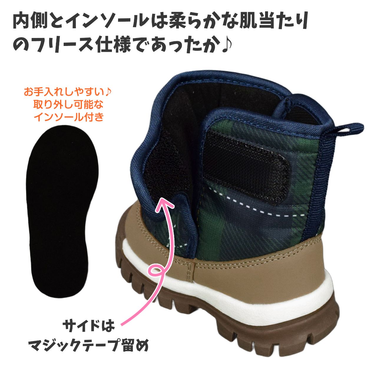 ☆ 商 品 説 明 ☆ GrinLab グリンラボ 柔らかソール はっ水加工 スノーブーツ 。 チェック柄のおしゃれな ウィンターブーツ です。撥水加工で雨や雪を弾きます。柔らかソールで小さなお子様も歩きやすい。サイドはマジックテープ留め。プルストラップも付いているので着脱もらくらく。インソールは取り外しできるのでお好みのインソールに付け替えもできます。 ※ 柄の出方は個々の商品によってそれぞれ異なります。(お選びいただけません) ※ 箱は付いていない場合がありますのでご了承願います。