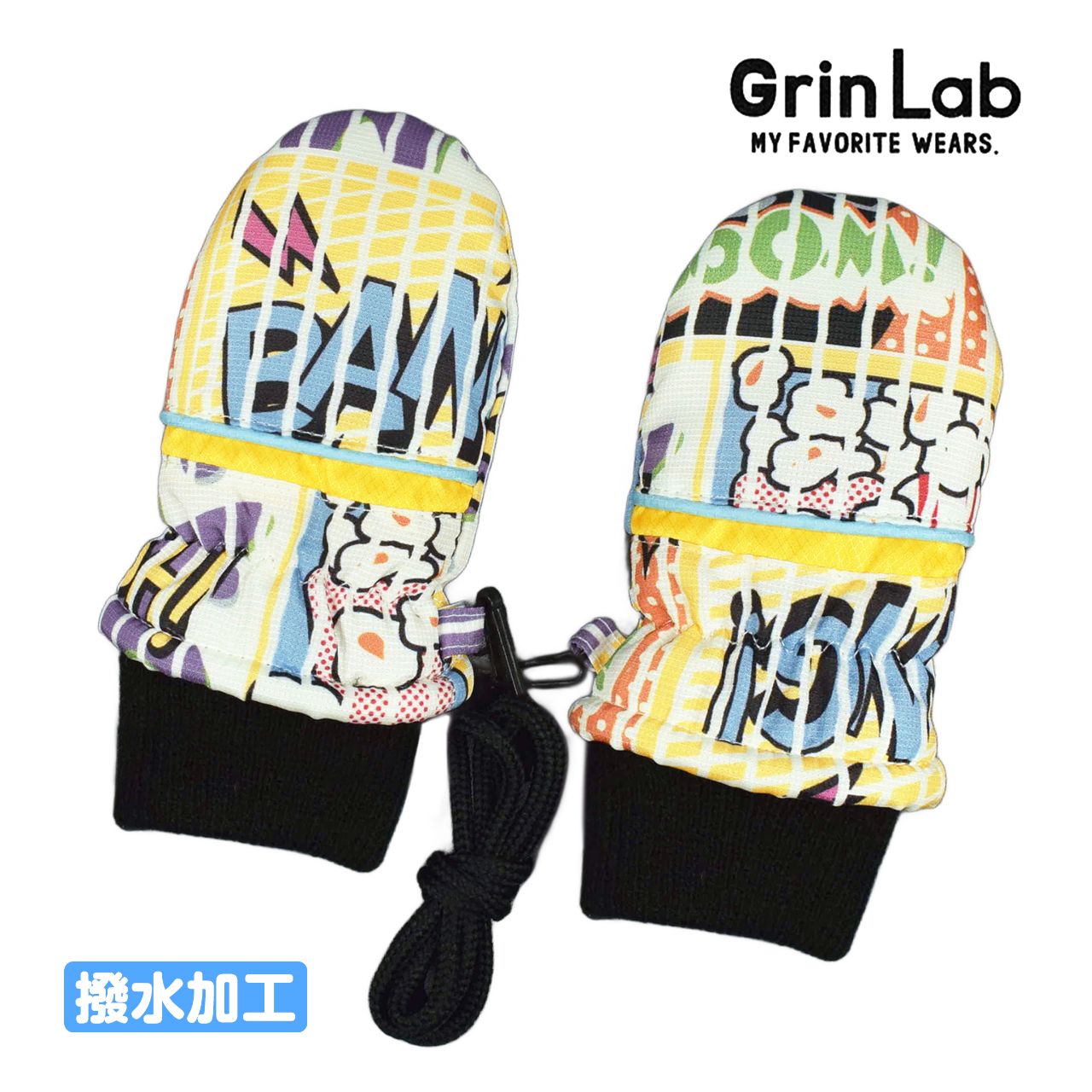 ☆ 商 品 説 明 ☆ GrinLab グリンラボ 裏ボア はっ水加工 中綿入り スノーミトン 。 ポップなアメコミプリント 中綿入り手袋 です。カフスはリブ・内側はフリースと裏ボアで あったか です。 紐付きだから紛失防止で安心。 ※柄の出方は個々の商品によってそれぞれ異なります。(お選び頂けません)