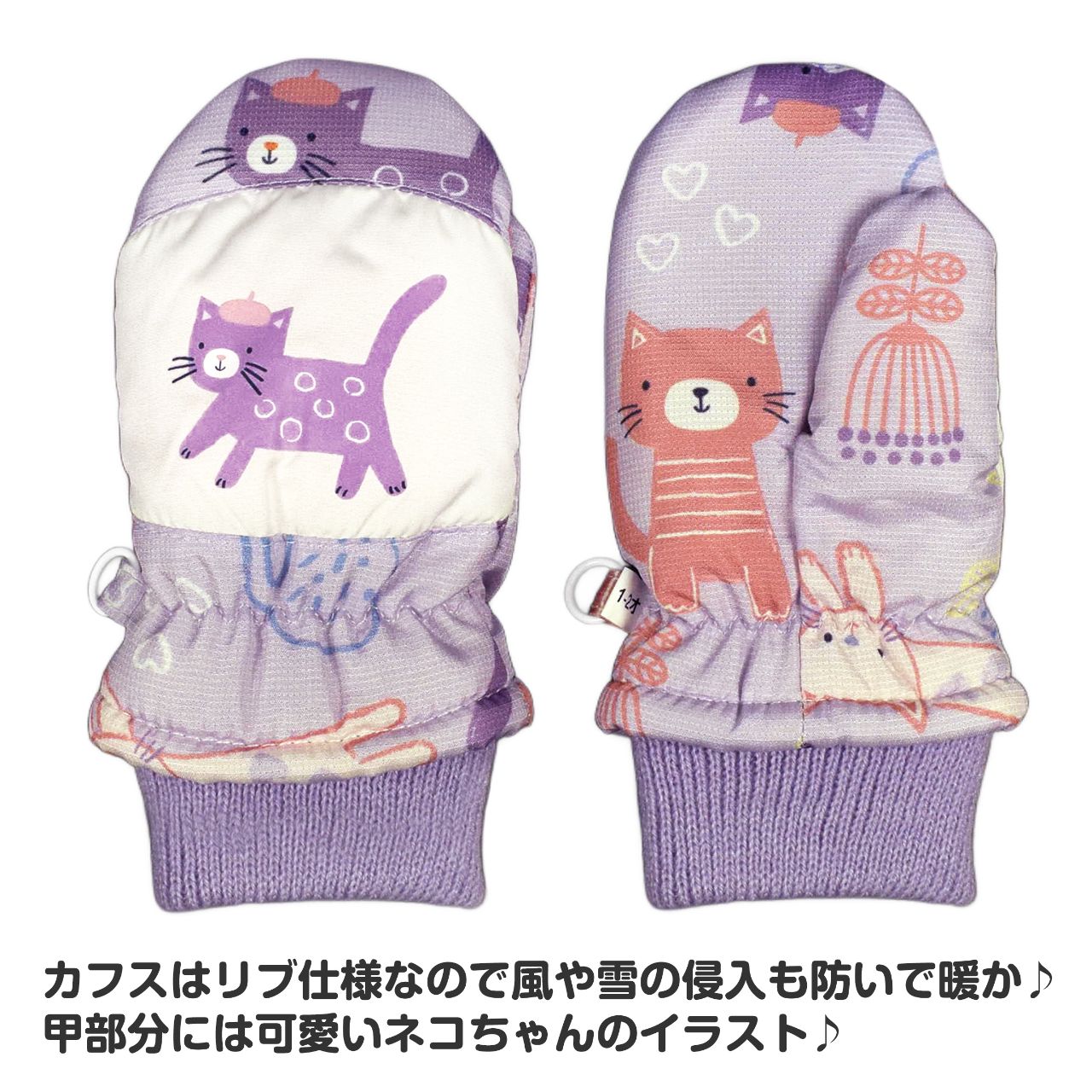 ☆ 商 品 説 明 ☆ GrinLab グリンラボ 裏ボア はっ水加工 中綿入り スノーミトン 。 かわいい ネコのプリント 中綿入り手袋 です。カフスはリブ・内側はフリースと裏ボアで あったか です。 紐付きだから紛失防止で安心。 ※柄の出方は個々の商品によってそれぞれ異なります。(お選び頂けません)