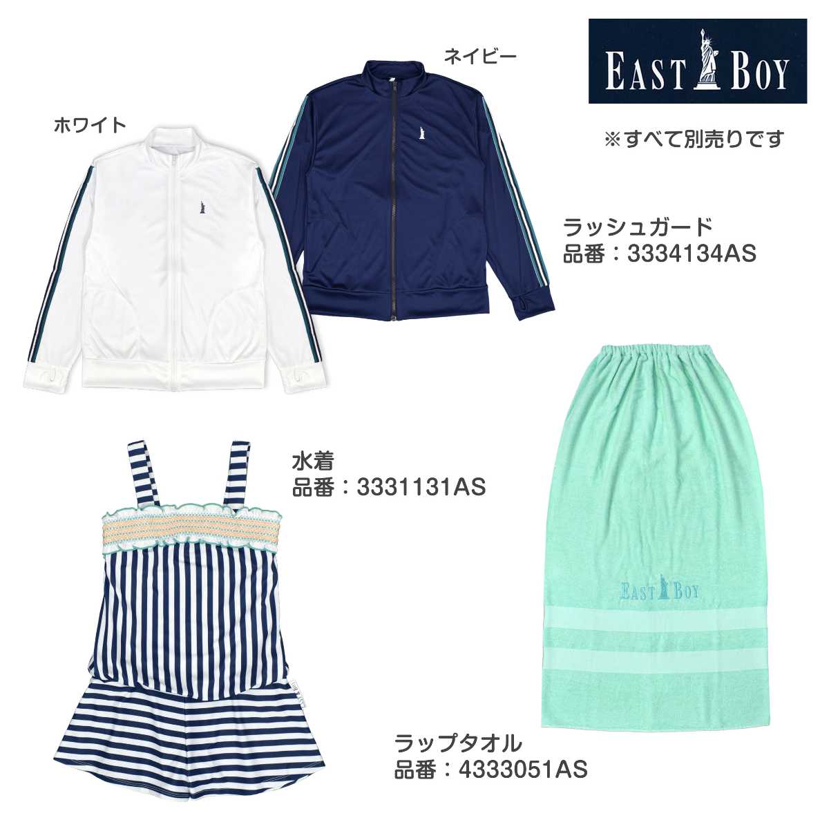 ※ EAST BOY 別売り商品 コンビネゾン水着 品番 3331131AS ラップタオル 品番 4333051AS ※ キッズ ジュニア スクール 女児 女の子 ガールズ 子供用 ※ 紫外線対策 怪我の防止(擦り傷防止) 水泳 スイミングスクール プール学習 海水浴 海 プール スイミング