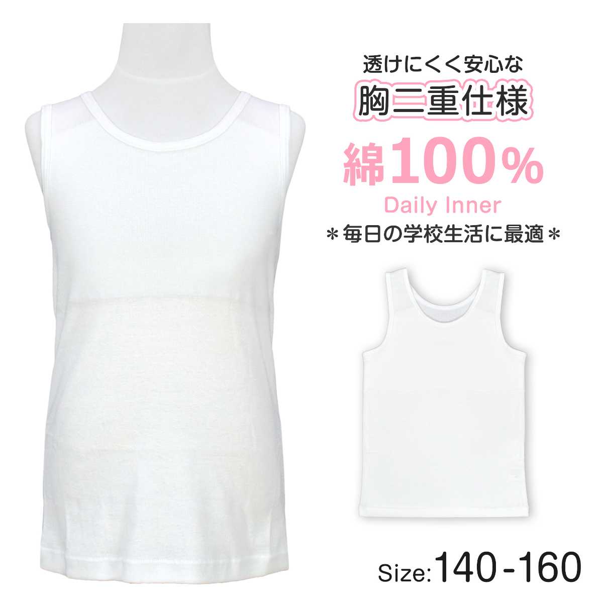 ☆ 商 品 説 明 ☆ 綿100% 女の子 胸二重仕様 タンクトップ 。 お肌に優しい綿100%。胸元が二重仕様なので バスト がふくらみはじめた女の子に最適な タンクトップ です。本格的なブラは早いけど、透けるのはイヤだと感じる 女子 におすすめの ベーシック なデザイン。アンダーゴムなし。