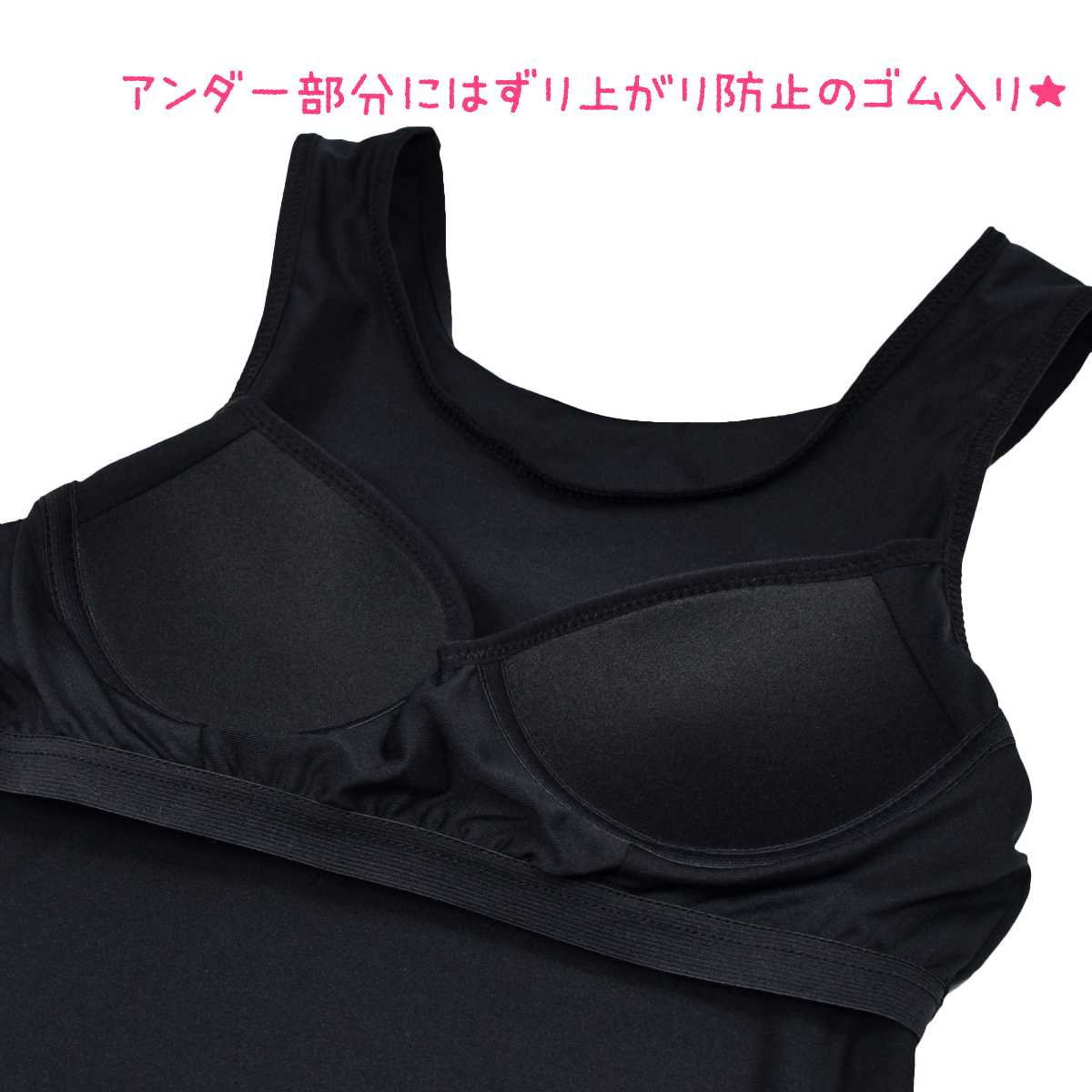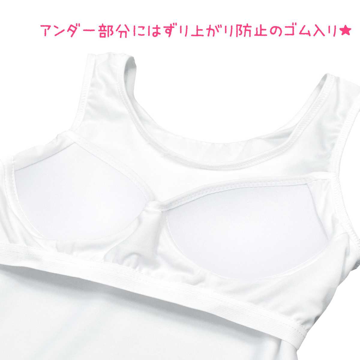 ブラカップ付きでブラの締め付けが苦手なお子様にオススメです。アンダー部分にはずり上がり防止のゴムが入っています。ストラップ調節可能。カップは取り外しできません。