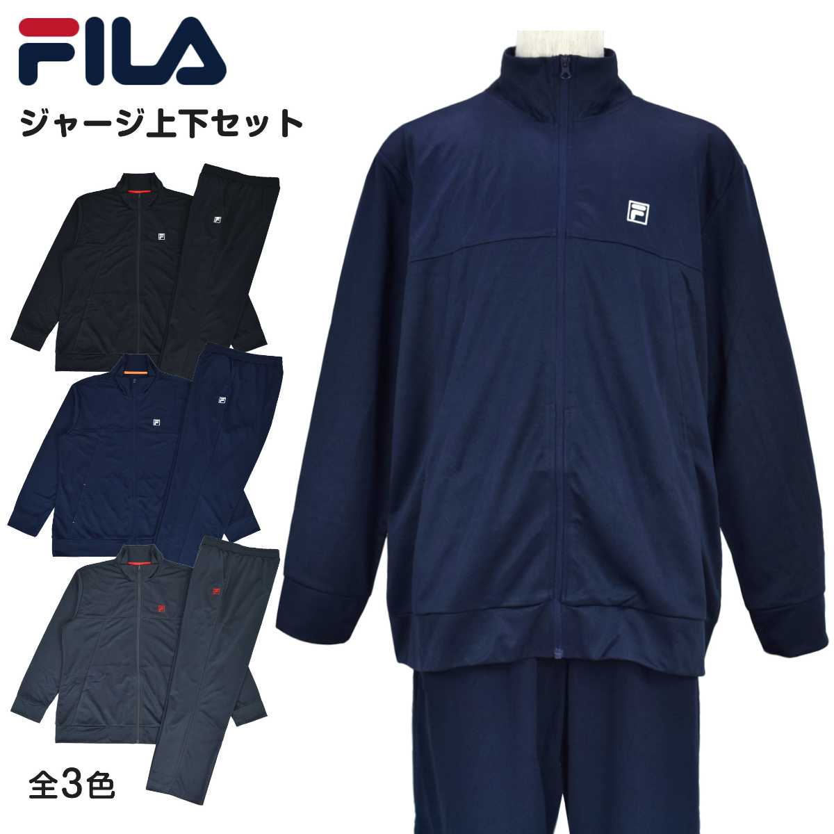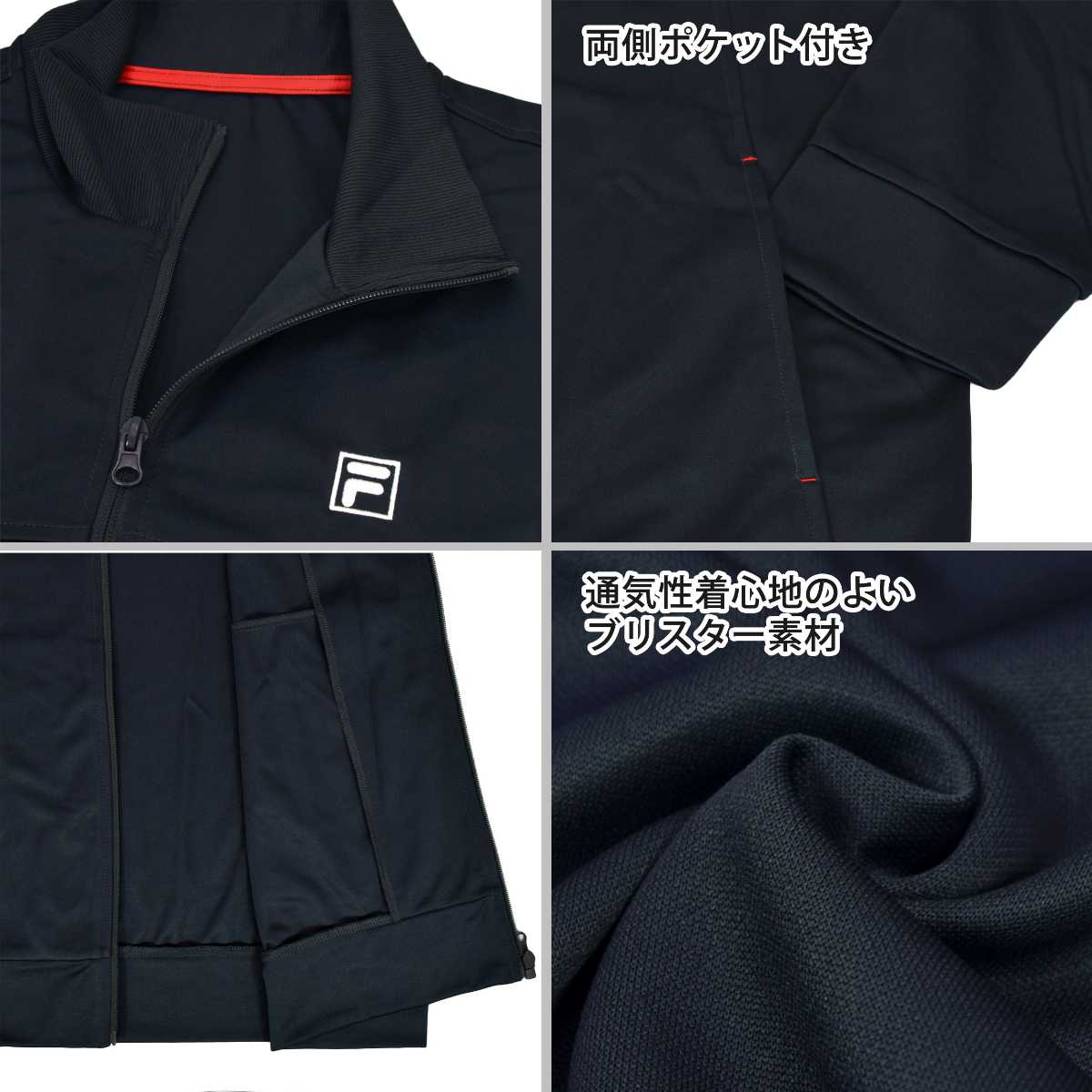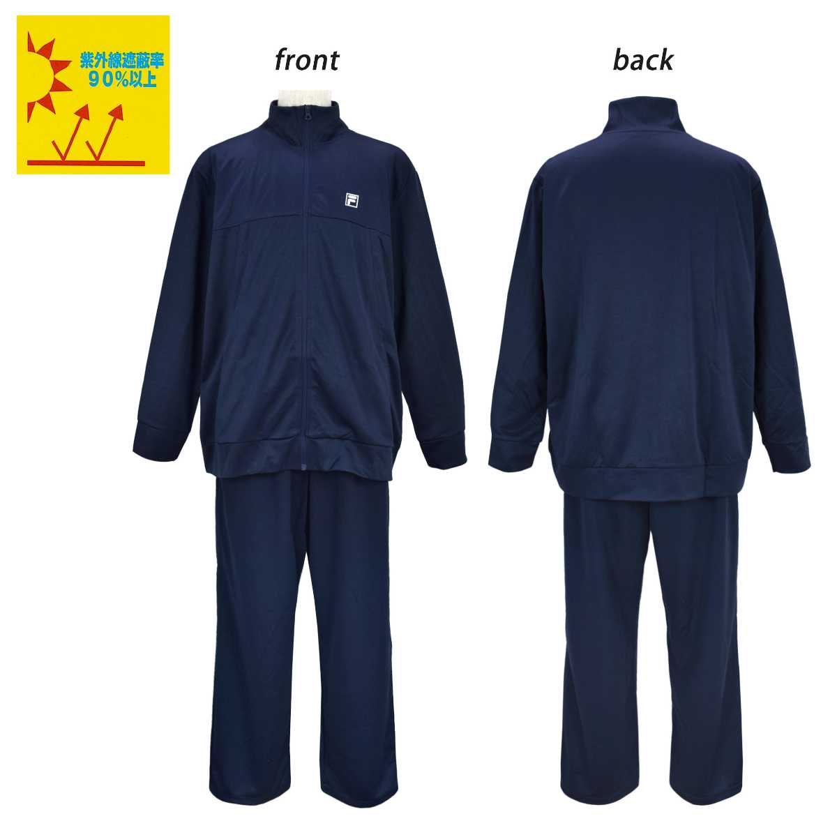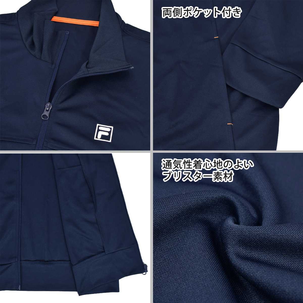 ☆ 商 品 説 明 ☆ FILA フィラ ロゴ入り UVカット ジャージ 上下セットです。 フィラの刺繍ロゴがワンポイントなシンプルカラーのトレニングウェア。 紫外線遮蔽率90%以上のUVカット生地。 通気性、着心地の良いブリスター素材なのでスポーツや普段使いにもオススメです。 ポケットはトップス・ボトムスに各2つ付き。 パンツはウエストゴム。紐あり。ゴム取り替え穴なし。