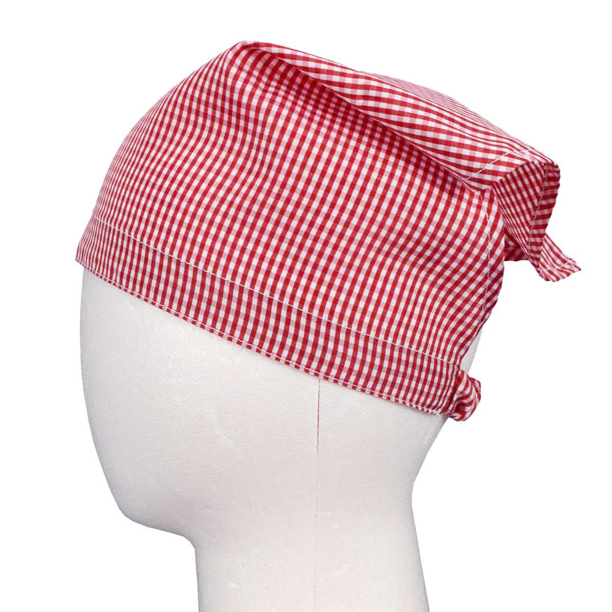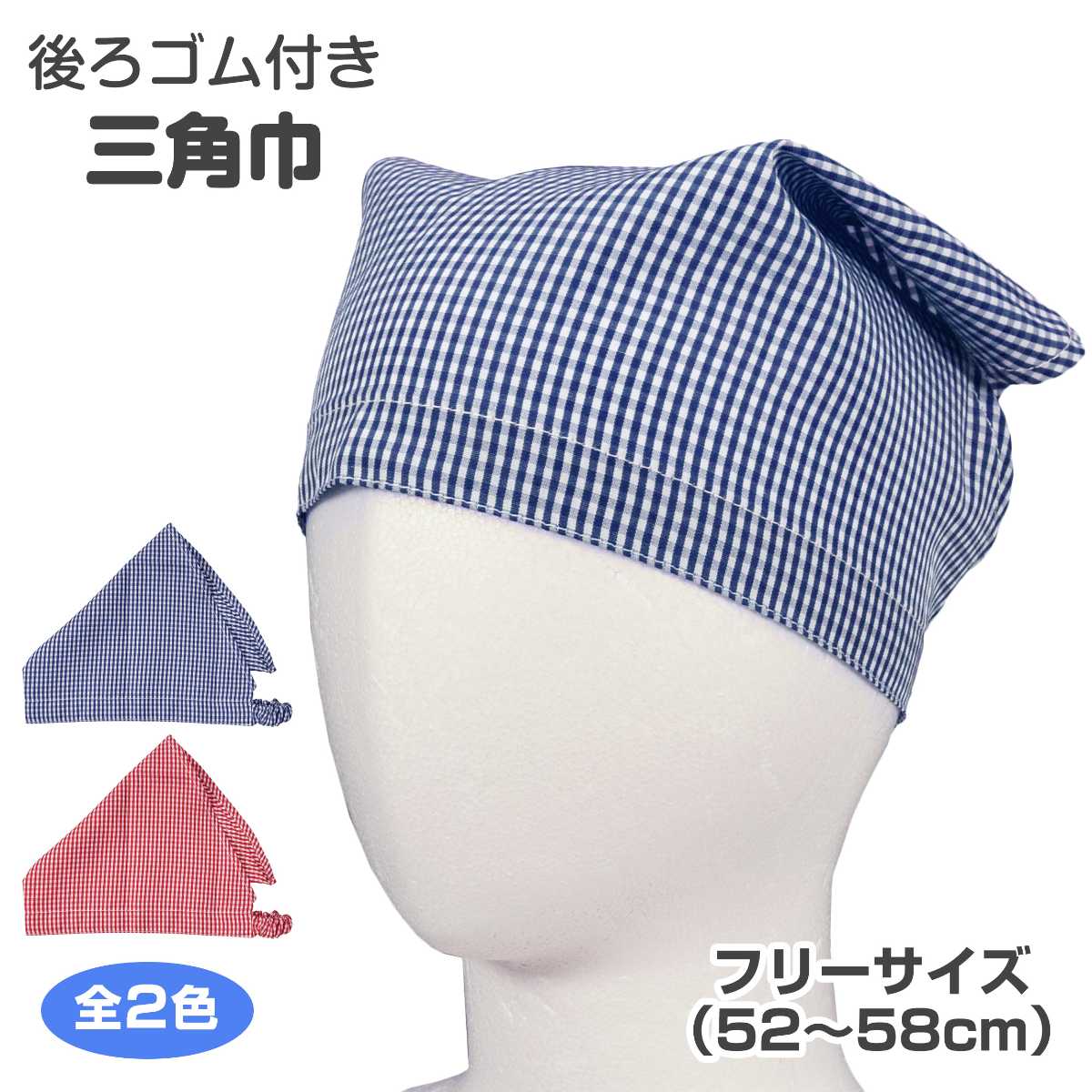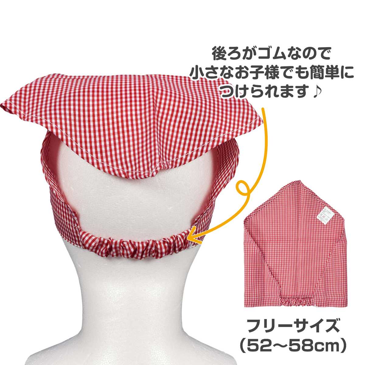 ギンガムチェック 柄でゴム付きの三角巾です。後ろ側にゴムが付いているので結ぶ手間もなく小さなお子様も簡単に付けられます。ゴム部分は同色布使用です。