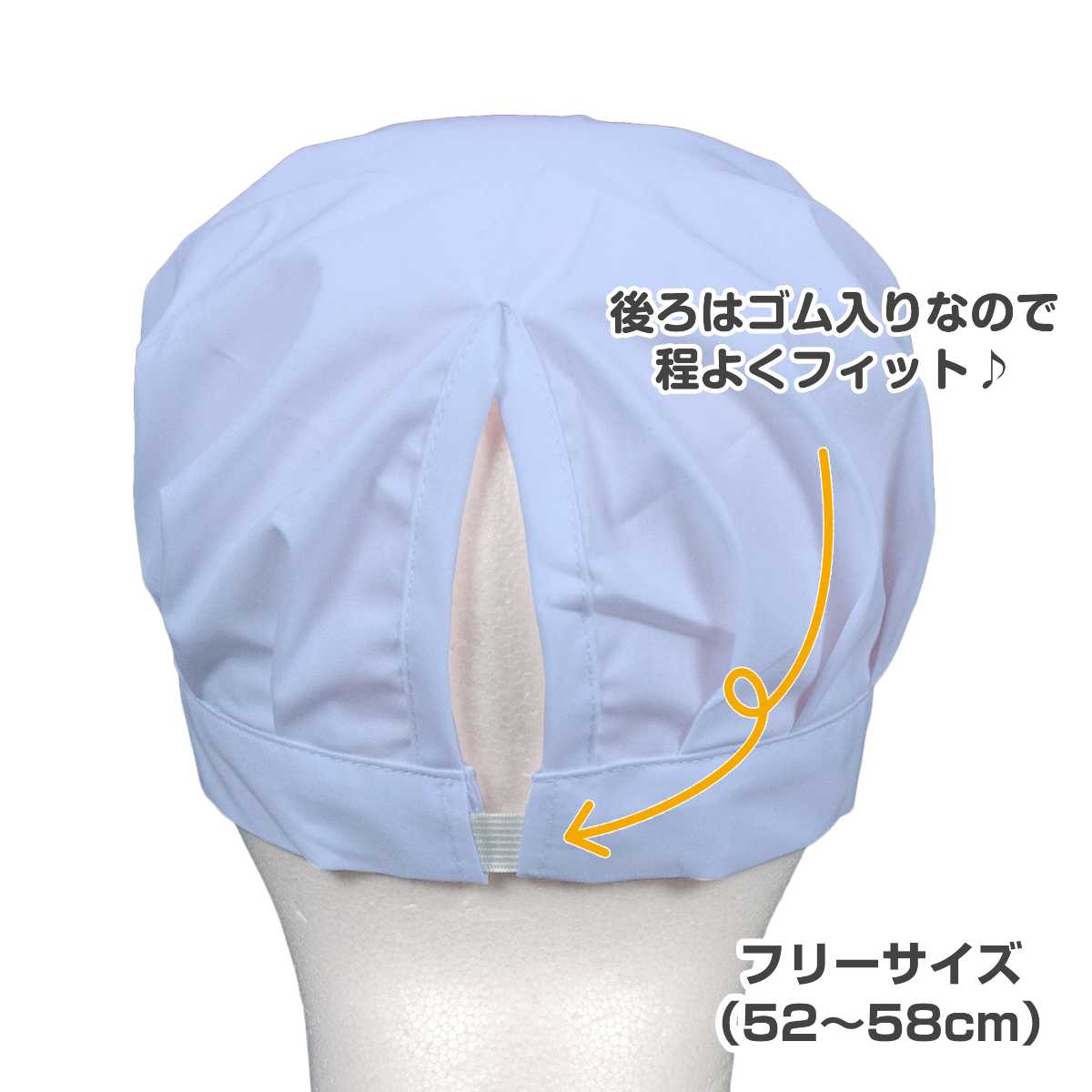お当番さんには必須のアイテムです。後ろ側はゴム入りなので程よくフィットします。