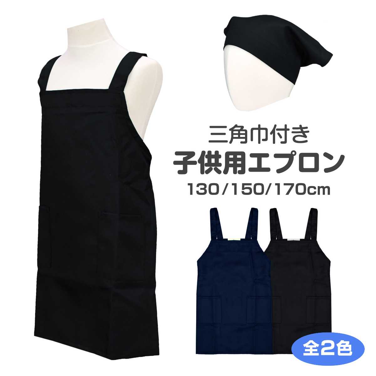 ※ 園児 キッズ ジュニア スクール 男児 女児 兼用 子供用 ※ 行事 クッキング 料理教室 習い事 学校 給食用 ※ ネイビー (紺) ブラック (黒) 全2色別売り