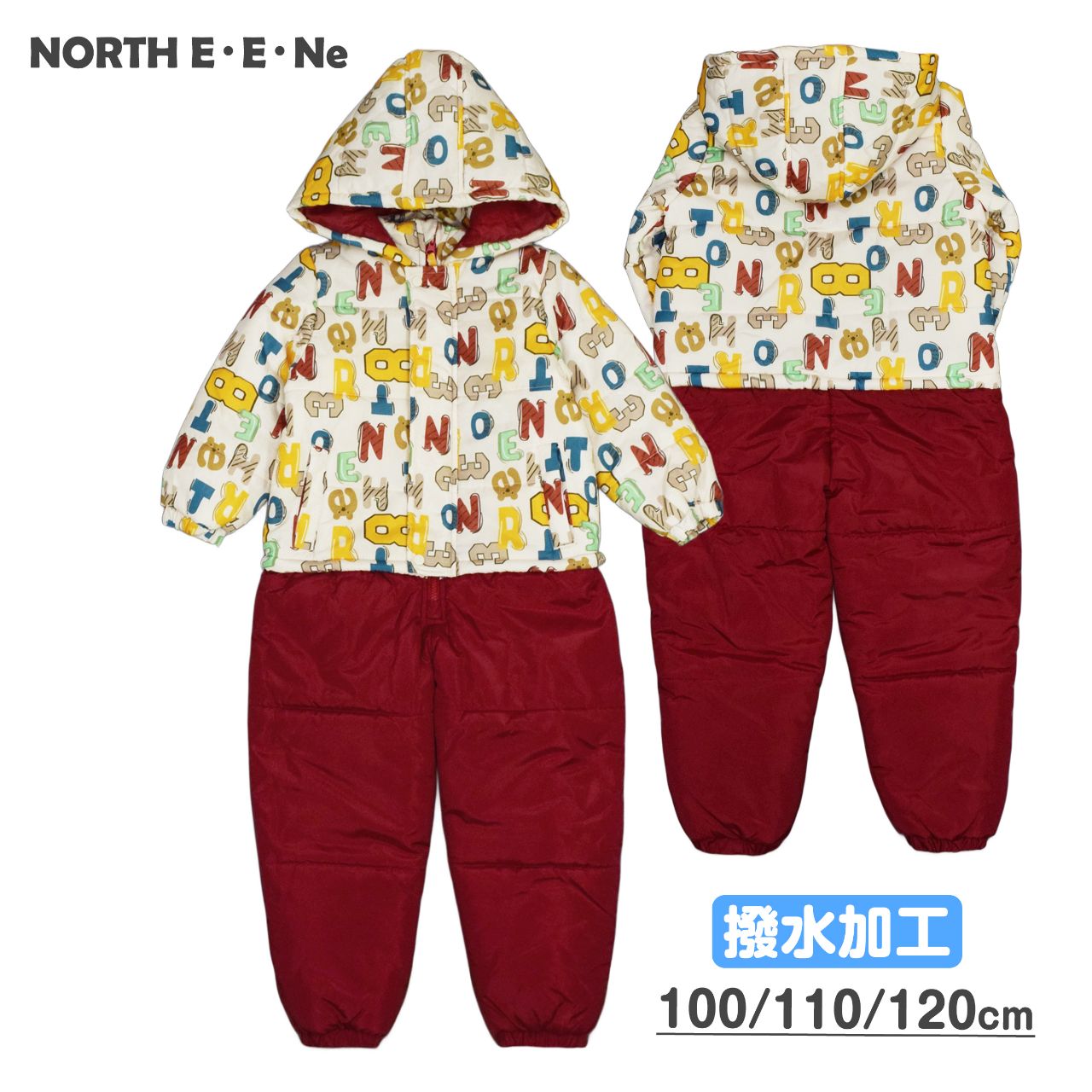 ☆ 商 品 説 明 ☆ 撥水加工 カラーロゴプリント 中綿入り ジャンプスーツ 。 アルファベットプリントの かわいい スノーコンビ です。はっ水加工が施されているので雨や雪を弾きます。首回りにはシャーリングが入っているので程よいフィット感。前立てのファスナーは 股部分辺りまであるので着脱もらくらく。ファスナーガード あり。フードは取り外し不可。手首と足首にはゴムが入っているので風の侵入を防いでくれます。ポケットは前に2つ。スノーガード あり。お名前タグあり。