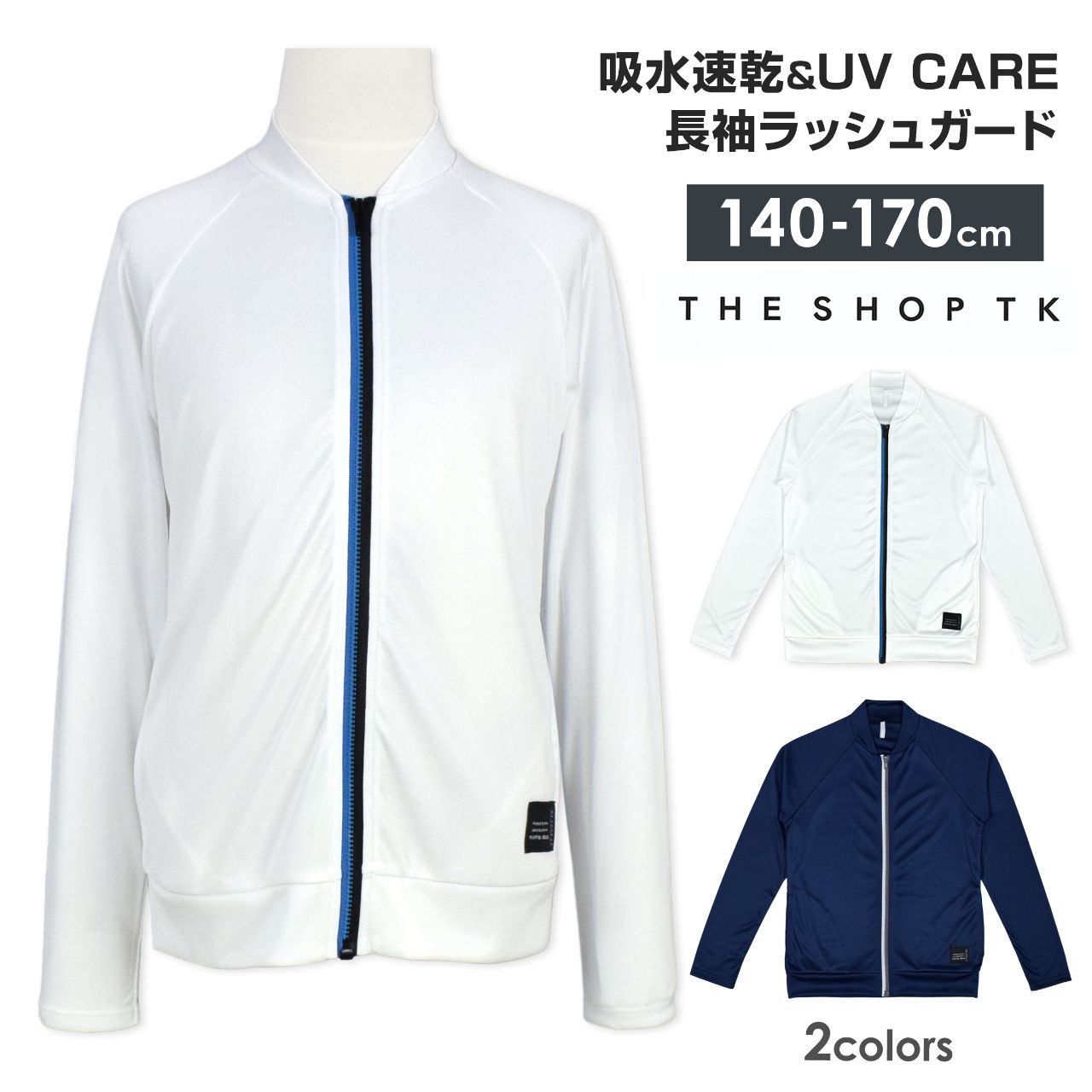 ☆ 商 品 説 明 ☆ THE SHOP TK ザ ショップ ティーケー UV クイックドライ 長袖ラッシュガード 。 UVCARE 紫外線遮蔽加工はしていませんが、紫外線遮蔽率は90%以上の試験数値が得られています。吸汗速乾 水分を素早く吸収・乾燥します。配色ジップがアクセントのラッシュガードです。前裾 ロゴチケット付き 後ろ裾 ロゴプリント入り。海や屋外プールでの日焼け対策におすすめです。