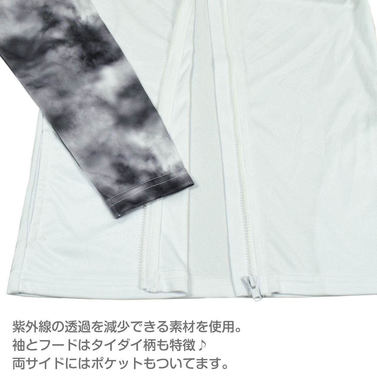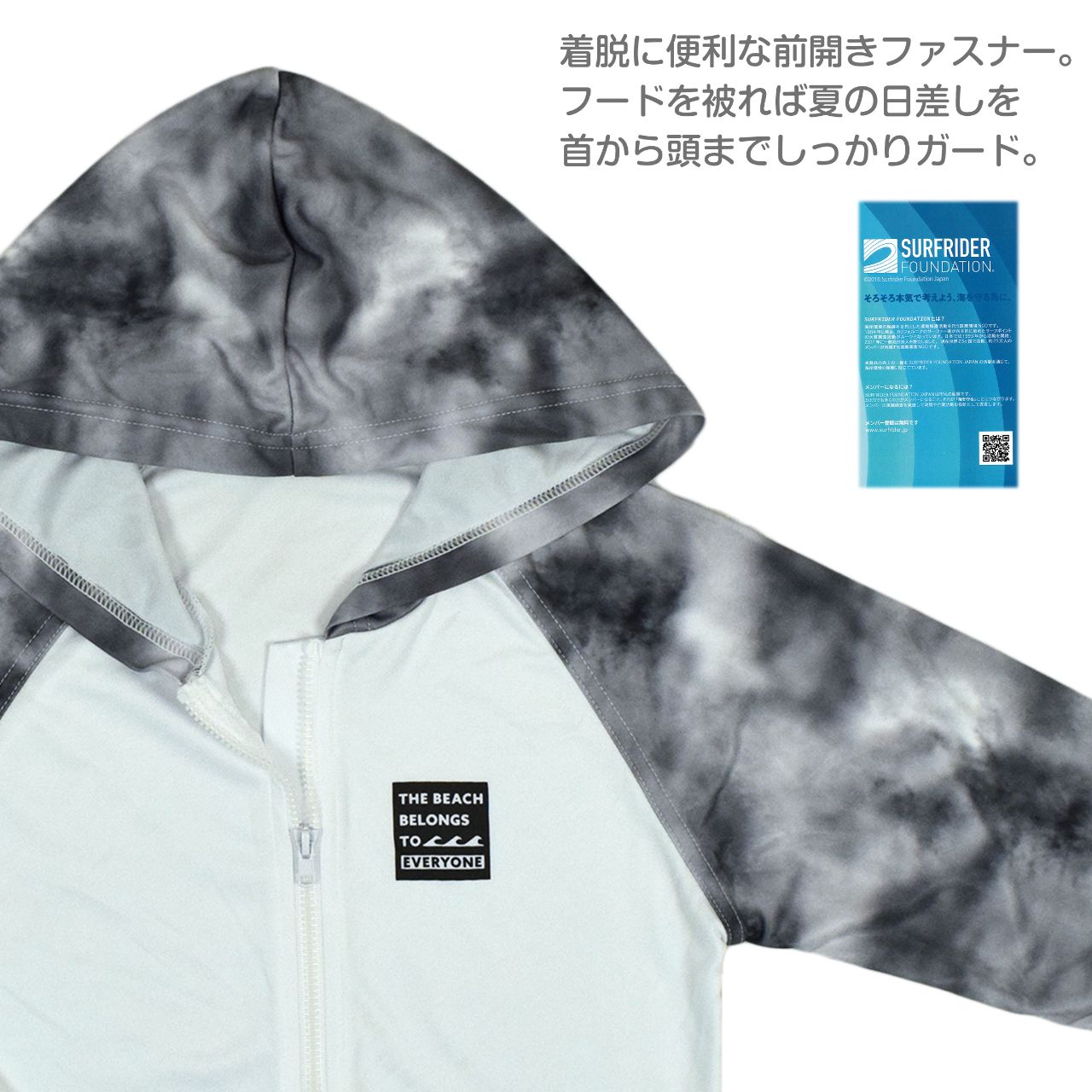 ☆ 商 品 説 明 ☆ SURFRAIDER FOUNDATION サーフライダーファウンデーション UVケア 長袖ラッシュガード 。 フード付き タイダイ柄 ラッシュパーカー です。着脱に便利な前開きファスナー。フードを被れば 夏の日差しを首から頭までしっかりガード。紫外線遮蔽加工はしておりませんが、紫外線遮蔽率は90%以上の試験数値が得られています。袖とフードはタイダイ柄。胸元ロゴチケット付き、右袖にロゴプリント入り。両サイドポケット付き。