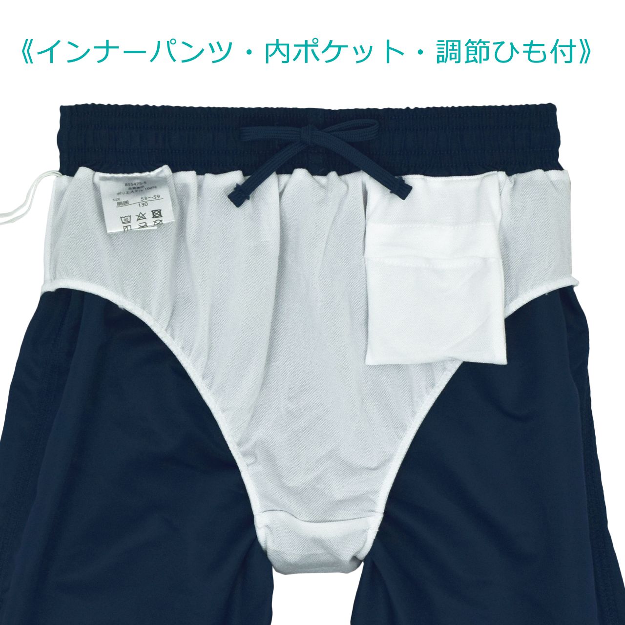 ☆ 商 品 説 明 ☆ UPF50+ インナーパンツ付き ミドル丈 スクール サーフパンツ です。 インナーパンツ に小さなフラップ付内 ポケット がついています。パンツ ウエストゴム、調節ヒモ有、ゴム取り替え穴無、お名前タグ付き 。 UPF(紫外線保護指数)