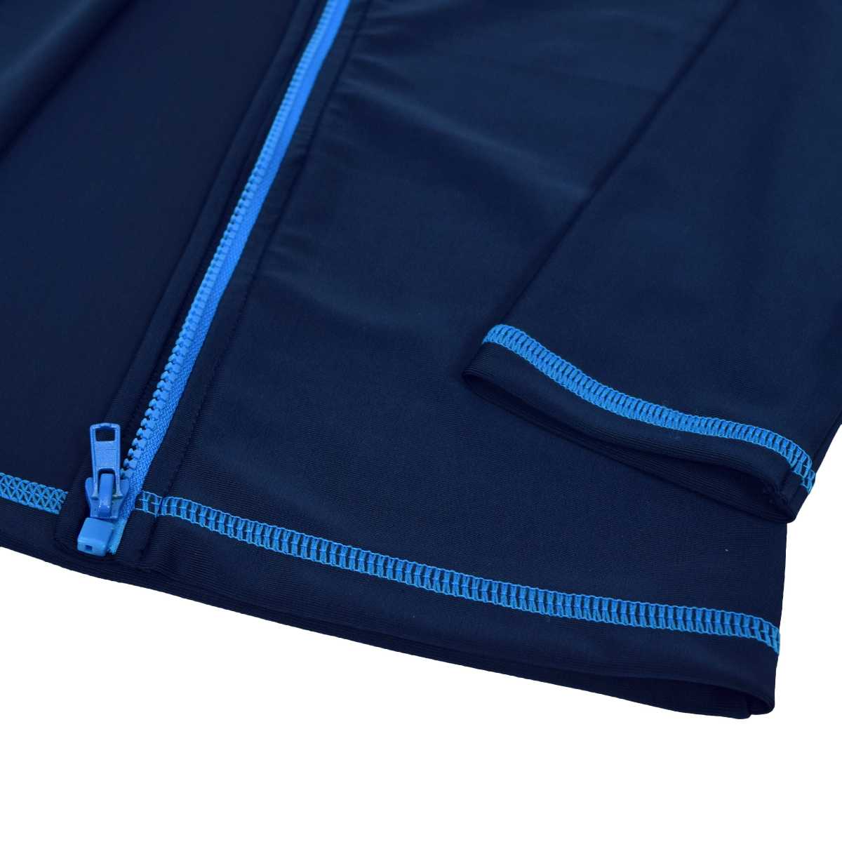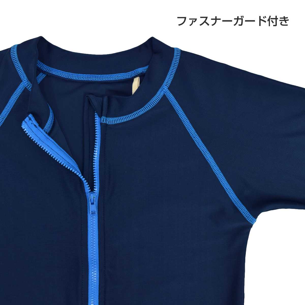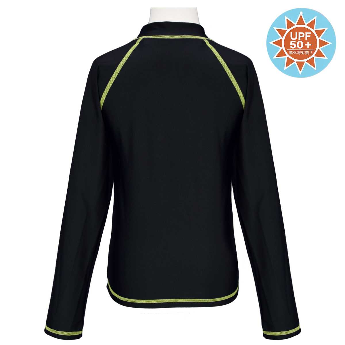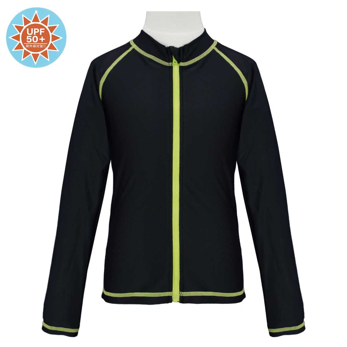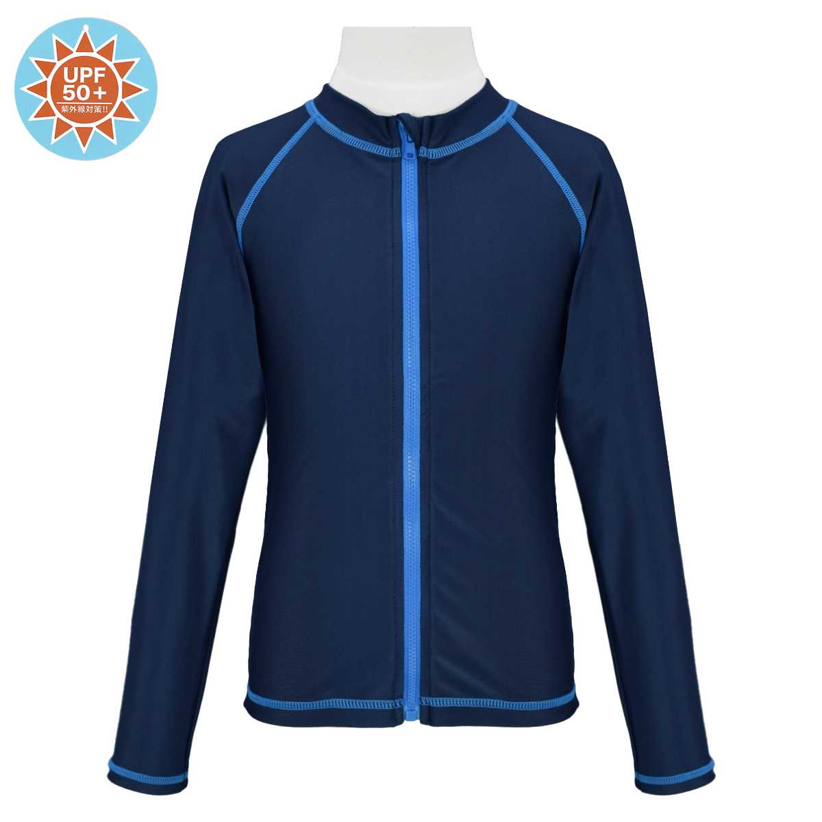 ☆ 商 品 説 明 ☆ UPF50+ UVカット加工 ジップアップ ステッチライン 長袖ラッシュガード です。 ステッチラインが入ったシンプルで合わせやすいス イムウェア 。ファスナー タイプなので着脱らくらく。UPF50+で紫外線対策にぴったり。ファスナーガード付き。裏側にお名前タグ付き。