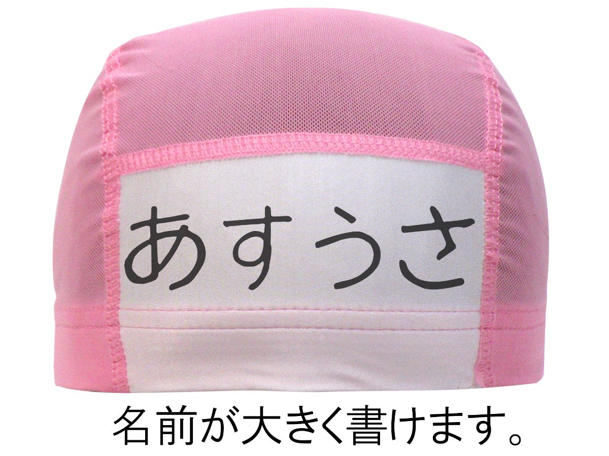男女兼用名前札付きメッシュスイムキャップです。