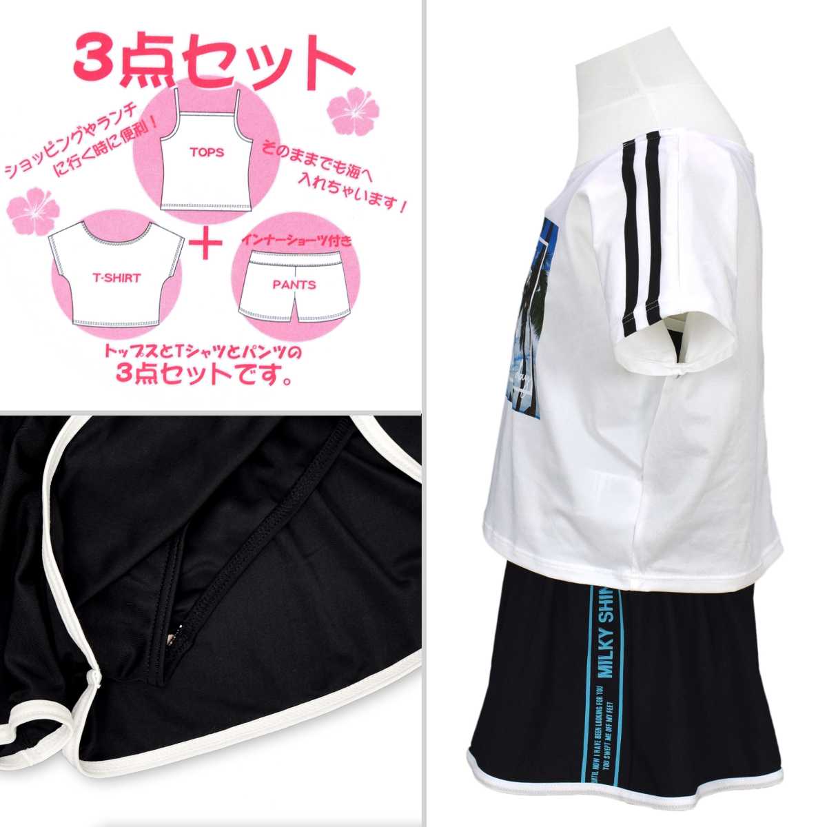 ☆ 素 材 説 明 ☆ トップス・パンツ : ポリエステル90%・ポリウレタン10% カバーアップ : ポリエステル95%・ポリウレタン5%