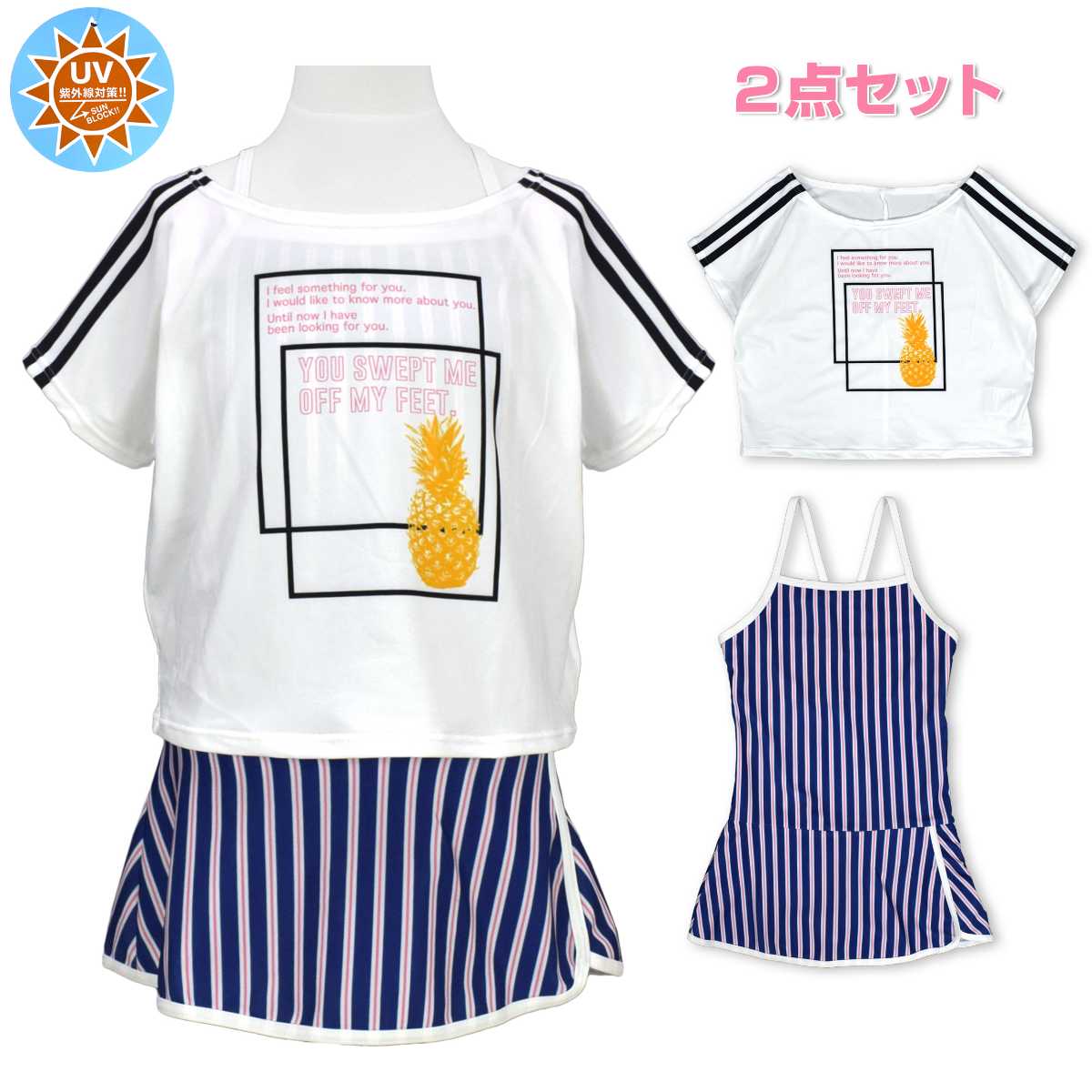 ☆ 商 品 説 明 ☆ UVカット加工 ストライプ柄 2点セット カバーアップ付き 水着です。 ストライプ柄が可愛らしい2点セットのスイムウエアです。 カバーアップを着てもワンピースだけでも可愛い2WAY仕様。 ワンピースタイプの水着は一体型のインナースパッツ付き。 カバーアップ付きなので洋服感覚で着られます。 UVカット加工で紫外線対策もバッチリ。 130cmは胸元内側に布付き、カップ差し込み口無し。 140cm-160cmはカップ差し込み口あり。取外しも可能です。 (カップは別売りです。)