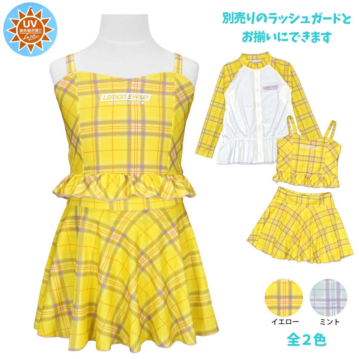 ☆ 商 品 説 明 ☆ UVカット加工 チェック柄 セパレート 水着 。 キャミソール タイプのトップスにバイアスチェックスカートの 上下セット です。ボトムスはスカートとショーツが一体型の スカパン タイプ。スカートとショーツはしっかり縫い付けてあるので無くす心配もありません。トップス のストラップは調節不可。UVカット加工で紫外線対策もバッチリです。 130cmは胸元内側に布付き、カップ差し込み口無し。 140cm-160cmはカップ差し込み口あり。カップ取り外し可能。(カップは別売りです。)