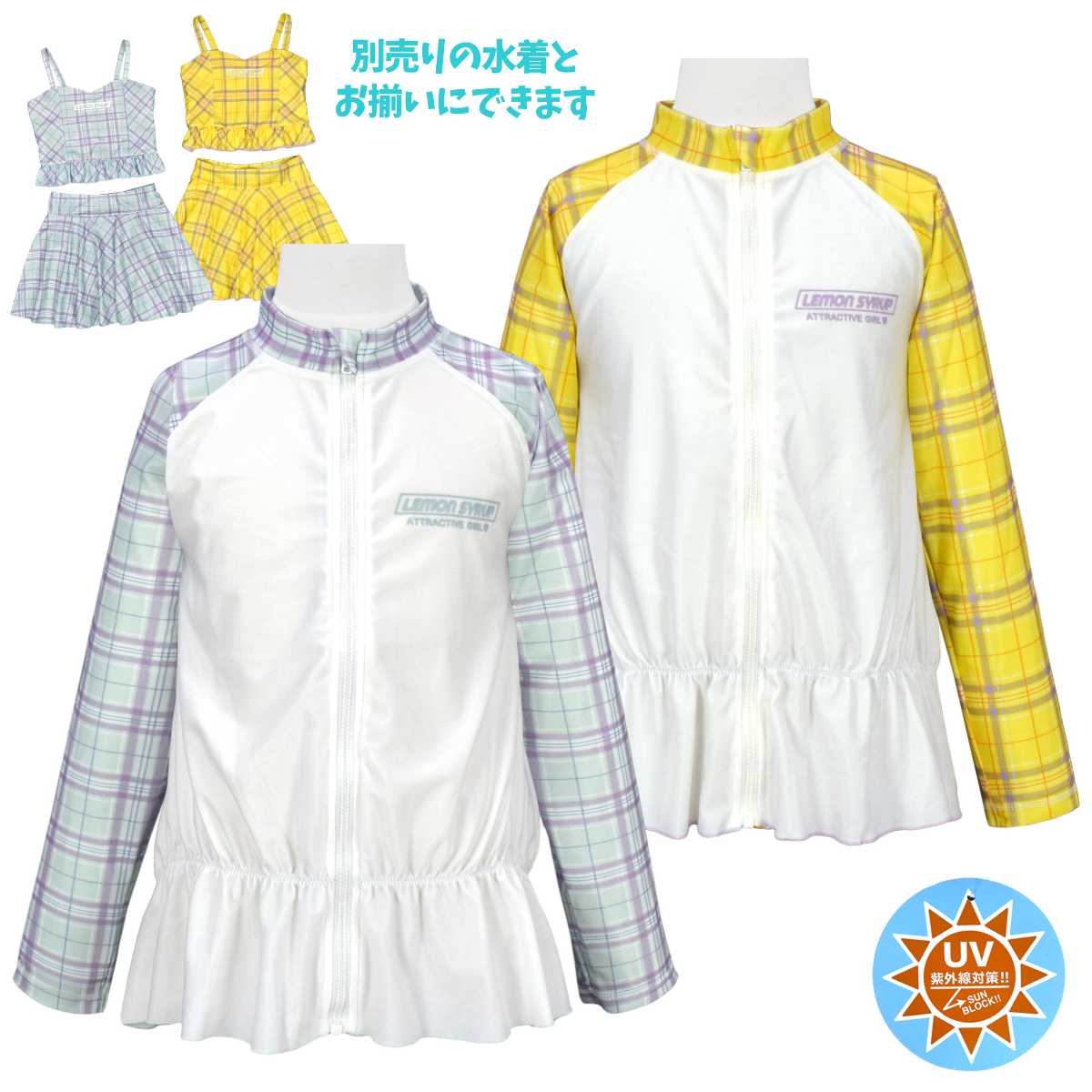 ☆ 商 品 説 明 ☆ UVカット加工 チェック柄 長袖ラッシュガード 。 かわいいチェック柄の ラッシュガード です。着脱の簡単な前開きファスナー。ウエスト部分はゴムシャーリングが入った 可愛い デザイン水着 。UVカット加工で紫外線をガード。ファスナーガード付き。