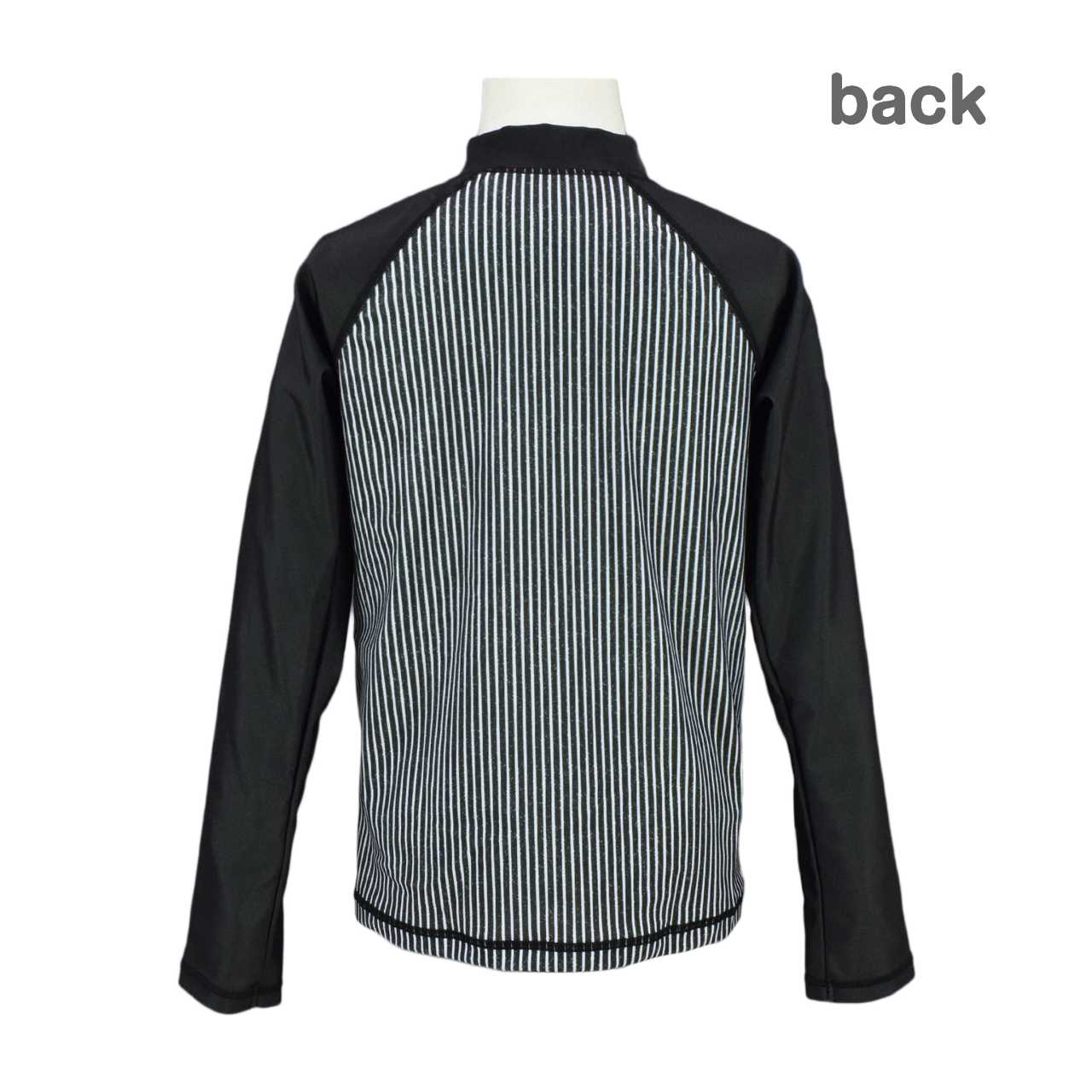 ☆ 商 品 説 明 ☆ UVカット加工 ストライプ柄 長袖ラッシュガード 。 ストライプ柄がおしゃれな ラッシュガード です。間隔の狭いストライプでスタイルアップ効果があります。着脱の簡単な 前開き ファスナー 。UVカット 加工で紫外線をガード。ファスナーガード付き。 ※ 袖口など折り返している部分が白く見える場合がございます。 色落ちや傷などはありませんので、返品対象外となります。