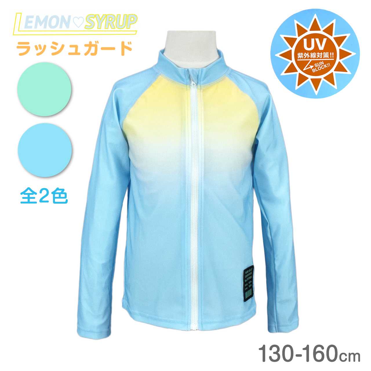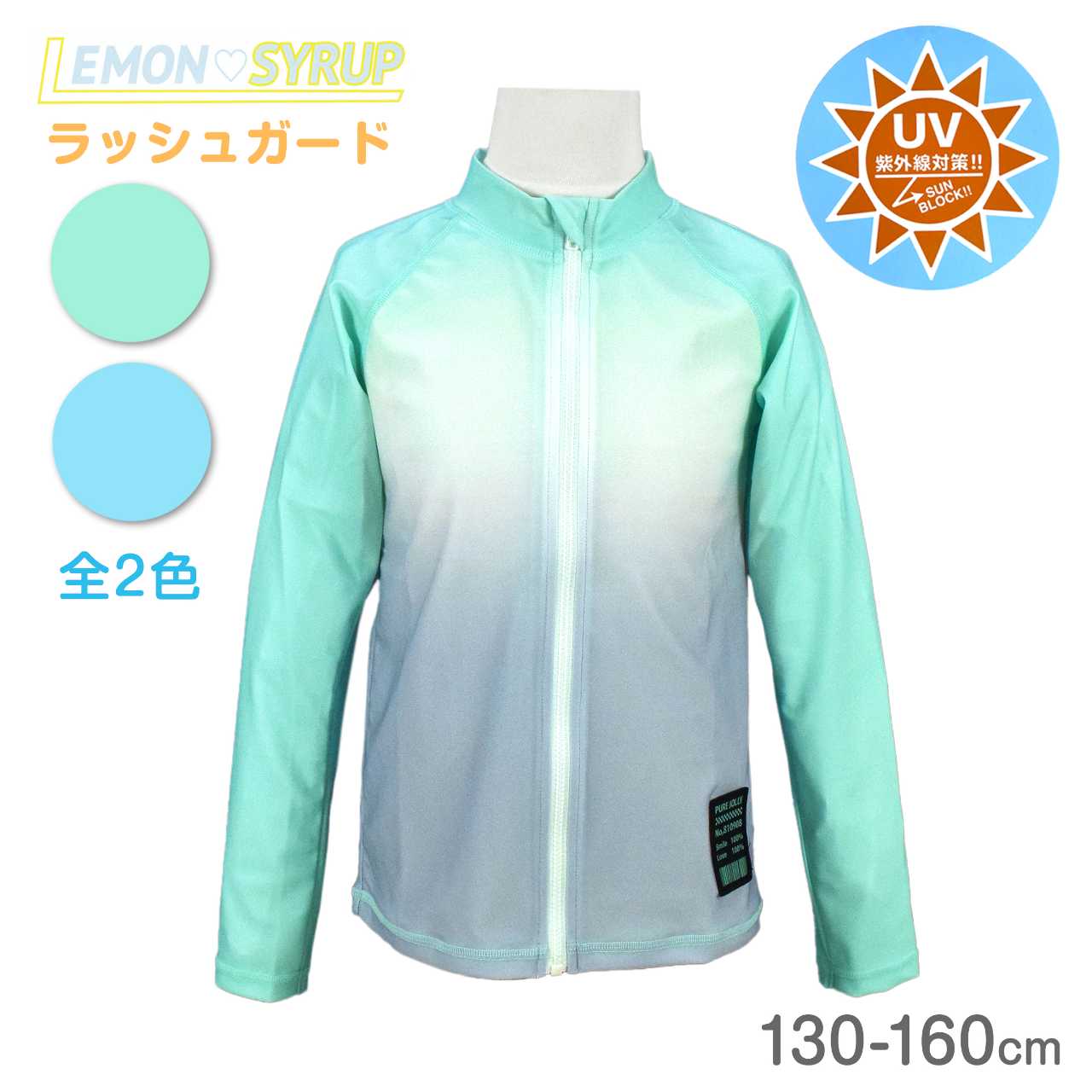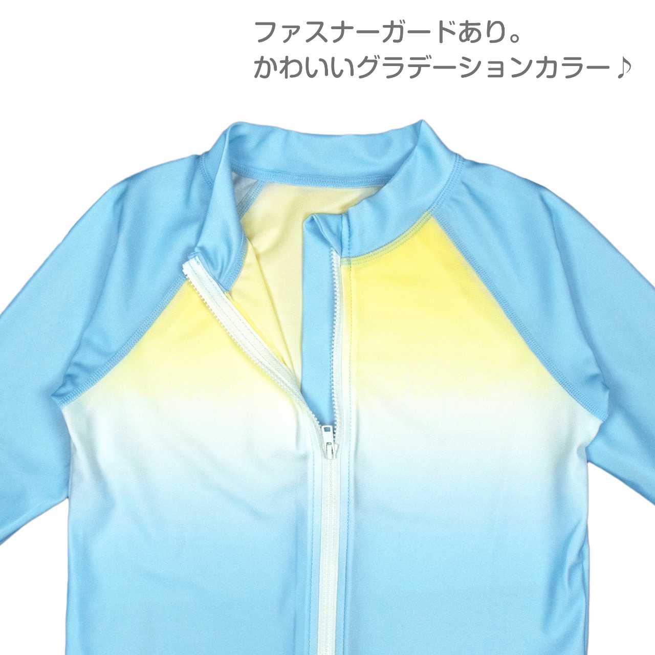 ☆ 商 品 説 明 ☆ UVカット加工 グラデーション 長袖ラッシュガード 。 グラデーションカラー に裾チケット付きの ラッシュガード です。着脱の簡単な 前開き ファスナー。UVカット 加工で紫外線をガード。ファスナーガード付き。シンプルなデザインなのでお手持ちの水着ともコーデしやすいラッシュガードです。