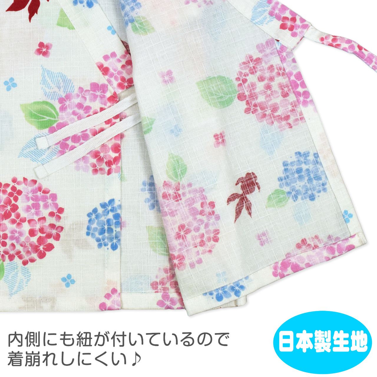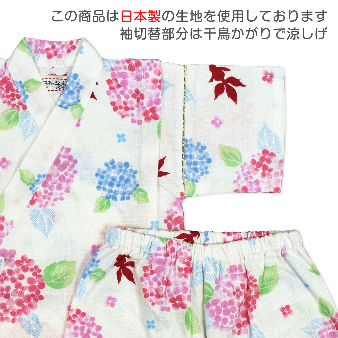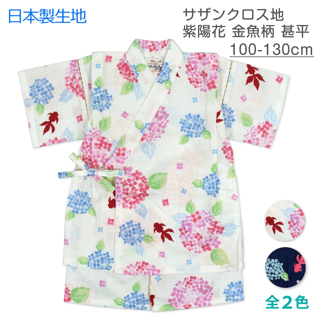 ☆ 商 品 説 明 ☆ 日本製生地使用 綿100% サザンクロス地 紫陽花 金魚柄 甚平。 綺麗な色の紫陽花と金魚の柄が 可愛い じん平 上下セット です。安心の日本製綿100%生地使用です。トップスは、内側にも紐が付いていて着崩れしにくく、袖の切替部分は、千鳥かがりとなっているので涼し気。パンツのウエストはゴム。紐なし。ゴム取換え穴あり。 日本企画・日本製生地使用(縫製中国) *模様や柄の出方は個々の商品によってそれぞれ異なります。