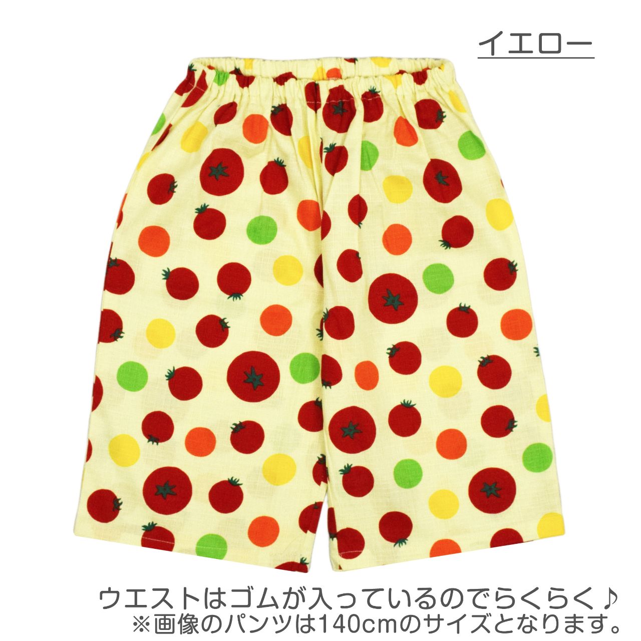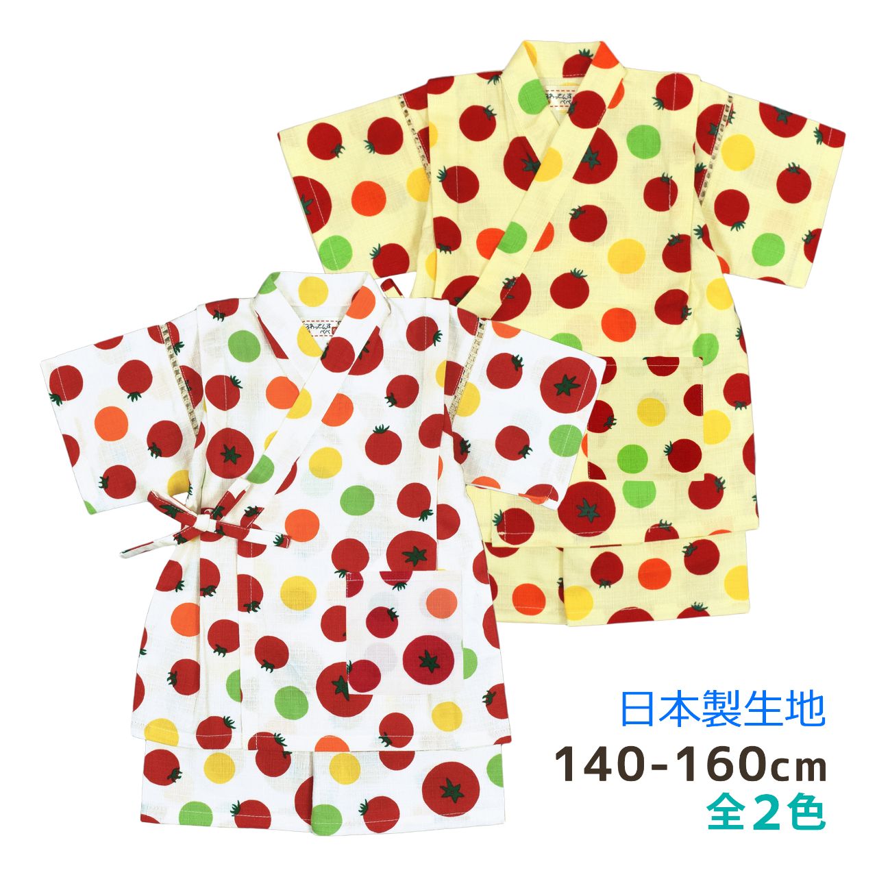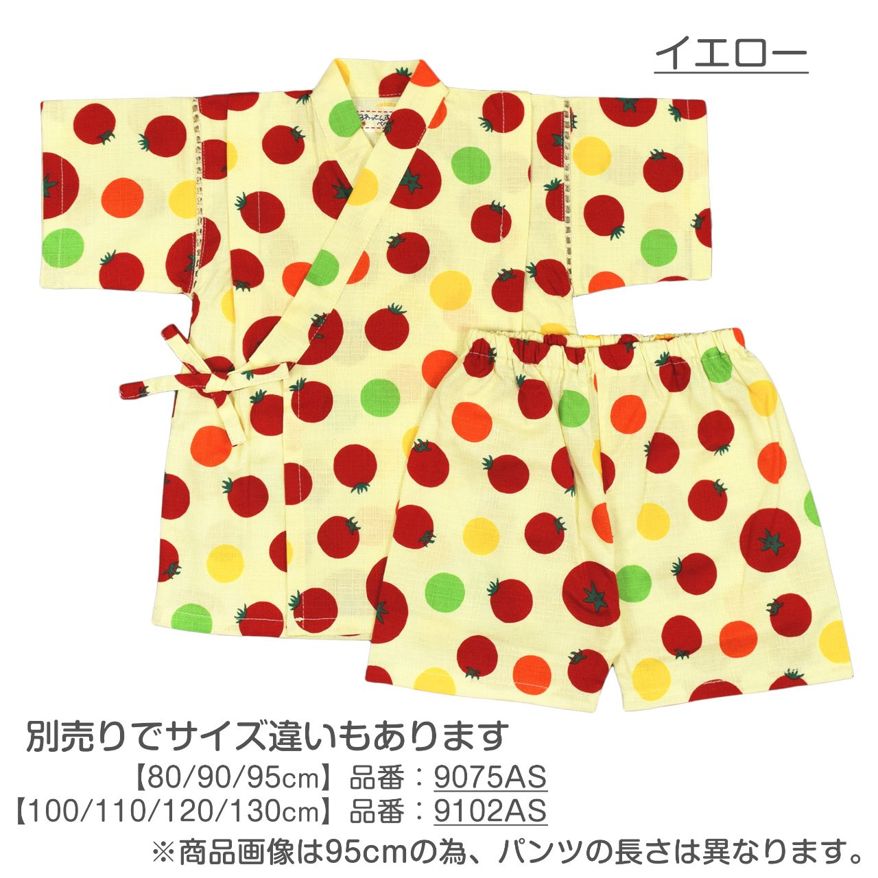 ☆ 商 品 説 明 ☆ 日本製の生地使用 綿100% サザンクロス地 トマト柄 甚平 。 ころころしたカラフルな かわいい トマト柄 じん平 上下セット です。安心の日本製 綿100%生地使用です。 トップスは、内側にも紐が付いていて着崩れしにくく、袖の切替部分は、千鳥かがりとなっているので涼し気。 パンツのウエストはゴム。ゴム取換え穴あり。前身頃左下にポケット一つ。