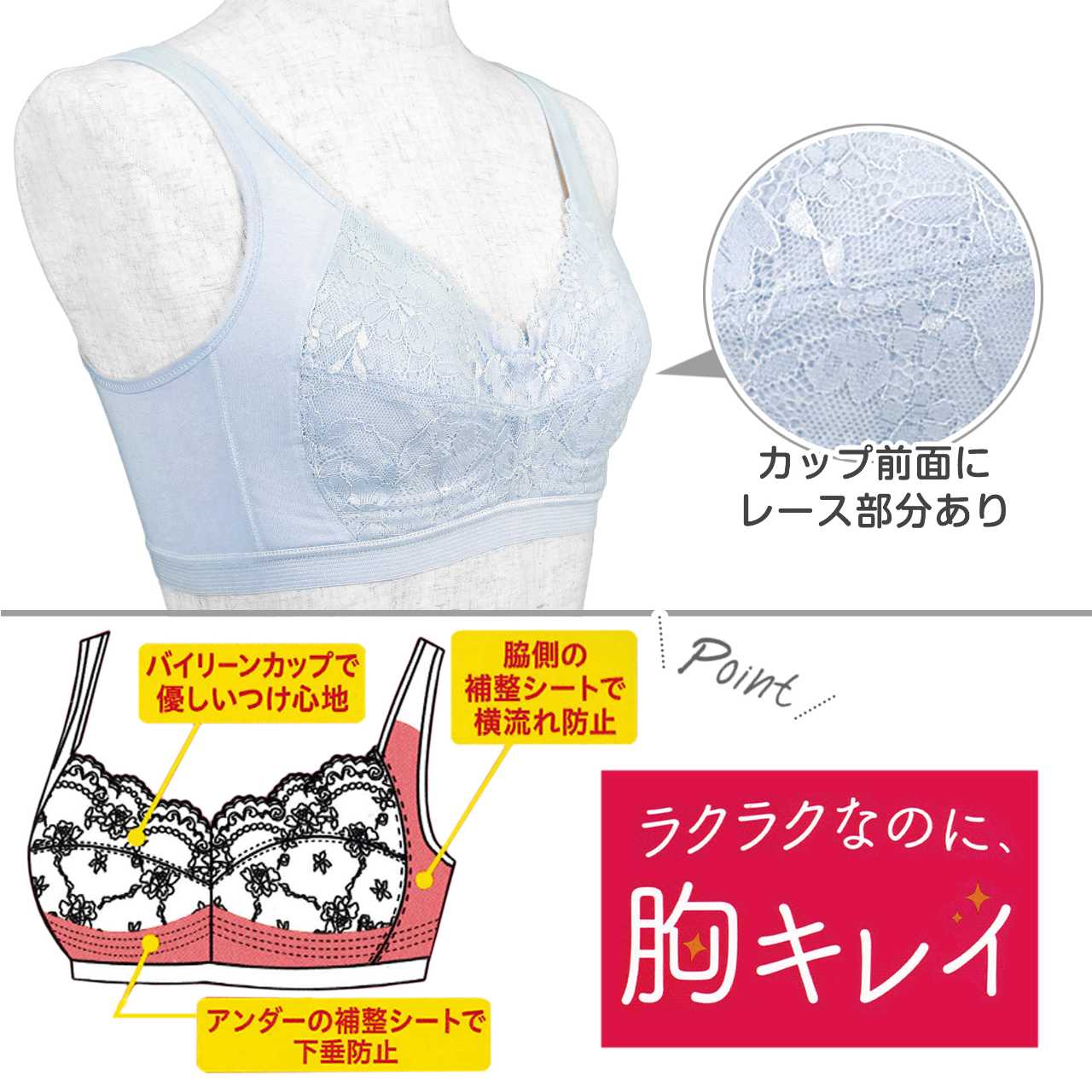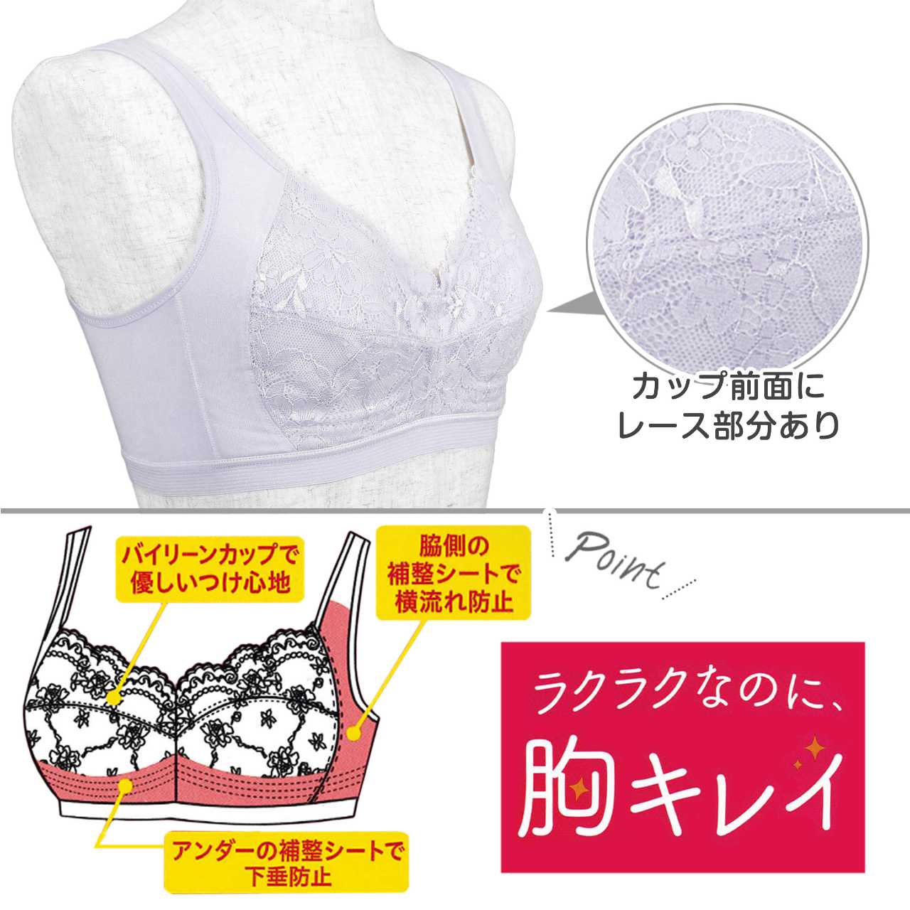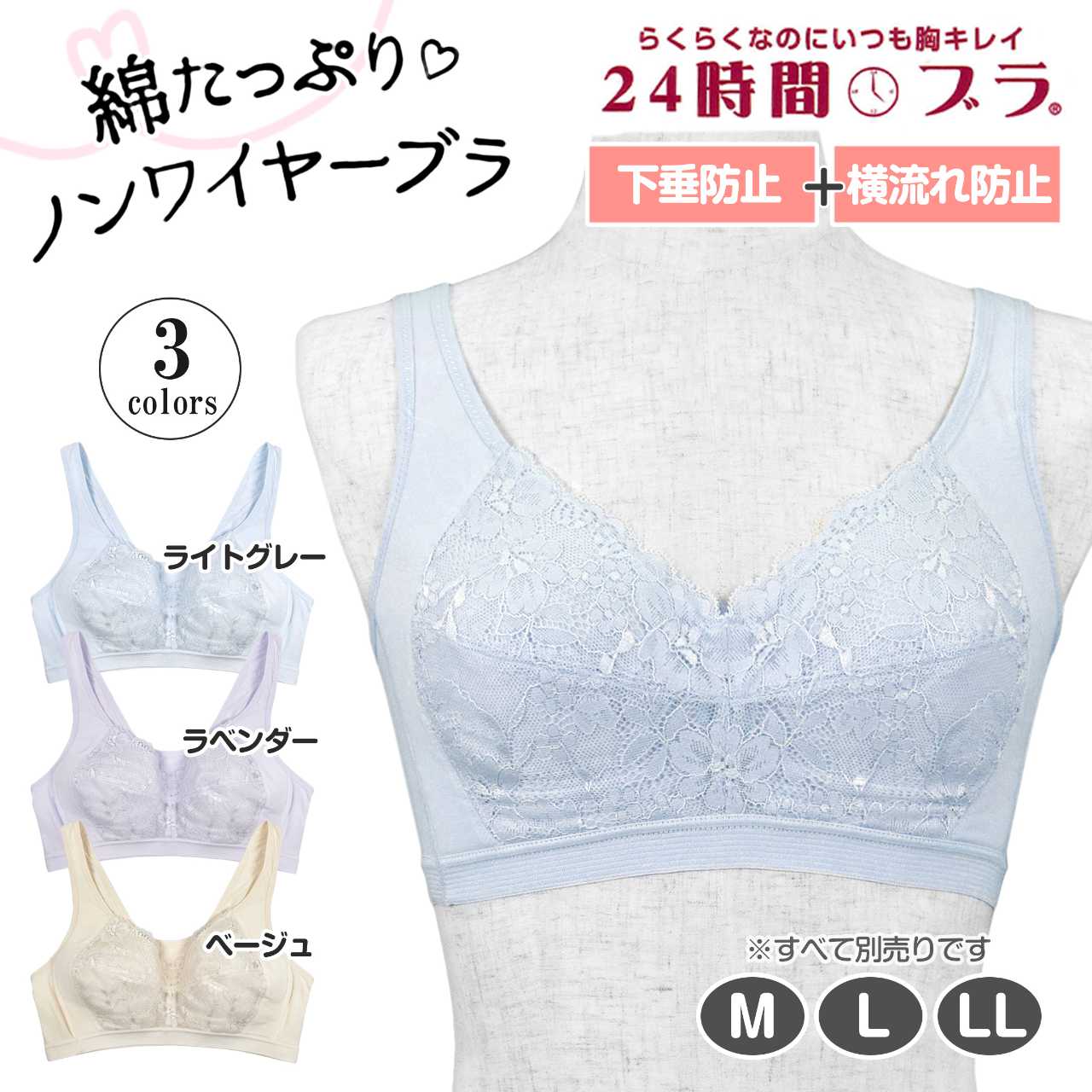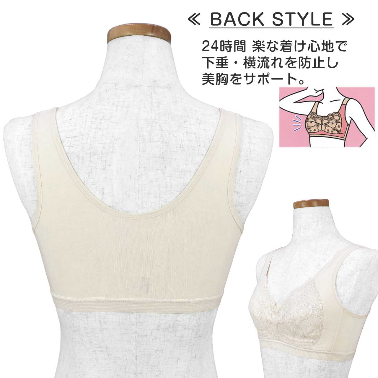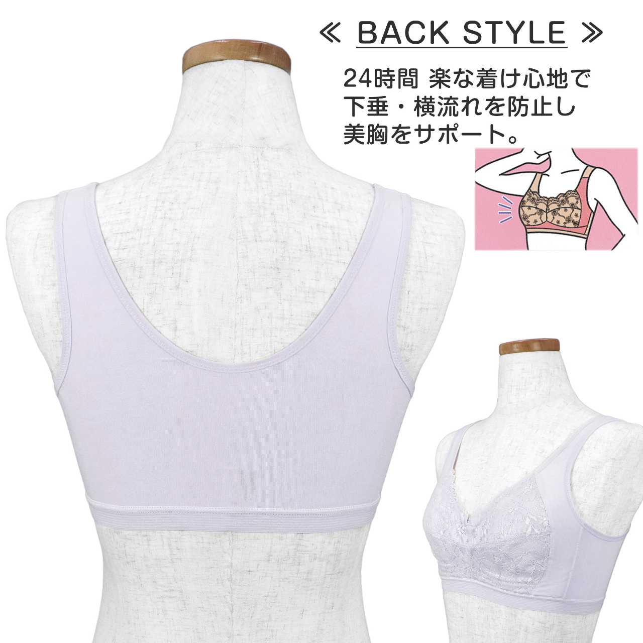 ナイトブラ 横流れ防止 下垂防止 快適 綿混 ハーフトップ フルカップ 楽ブラ ○ 商品型番:9851-31AS