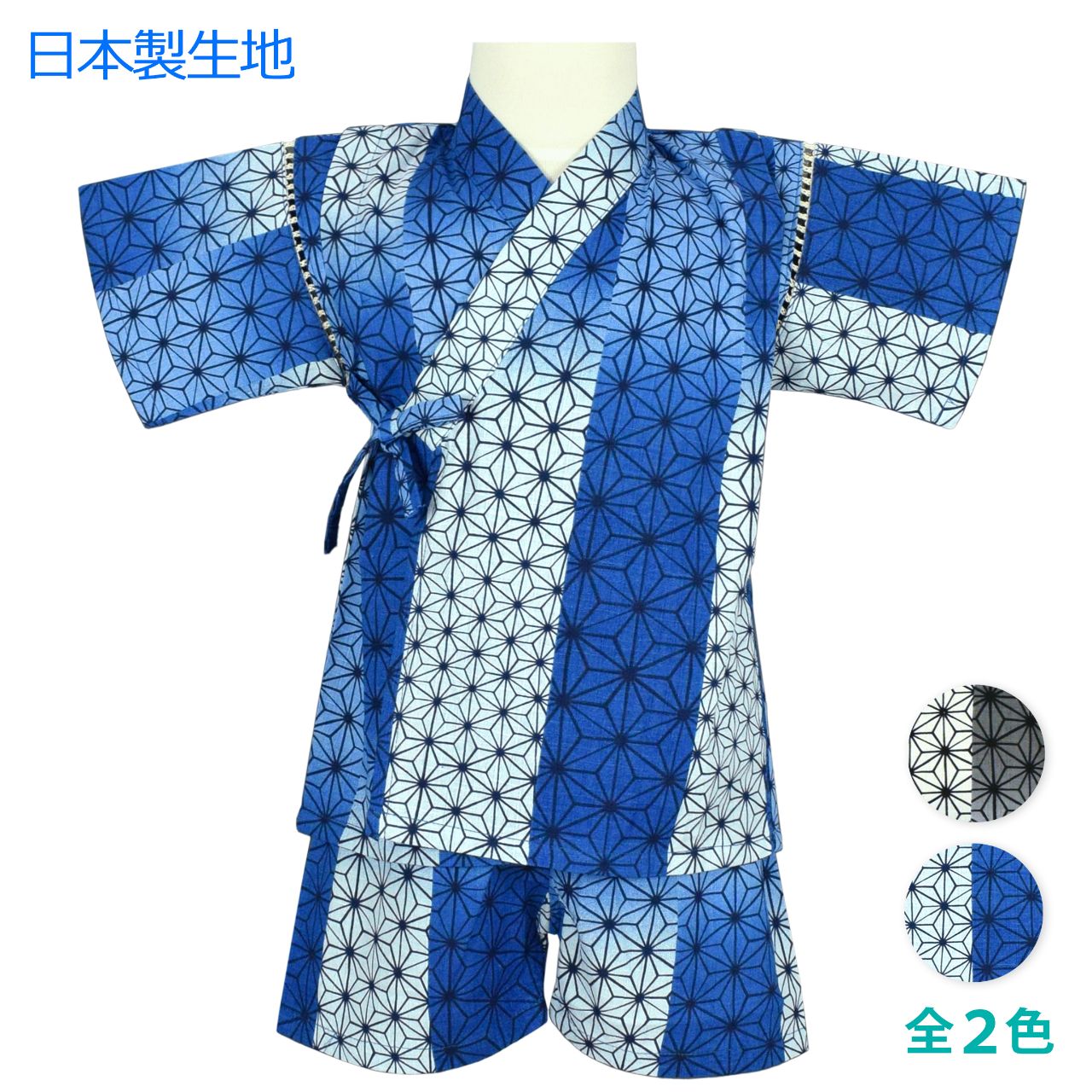 ☆ 商 品 説 明 ☆ 日本製の生地使用 綿100% 麻の葉柄 甚平 。 グラデーション と大小の麻の葉柄が かっこいい じん平 上下セット です。安心の日本製、綿100%サザンクロスの生地使用です。パンツ、ウェストはゴム。紐なし。ゴム取換え穴あり。 日本企画・日本製生地使用(縫製中国) *模様や柄の出方は個々の商品によってそれぞれ異なります。