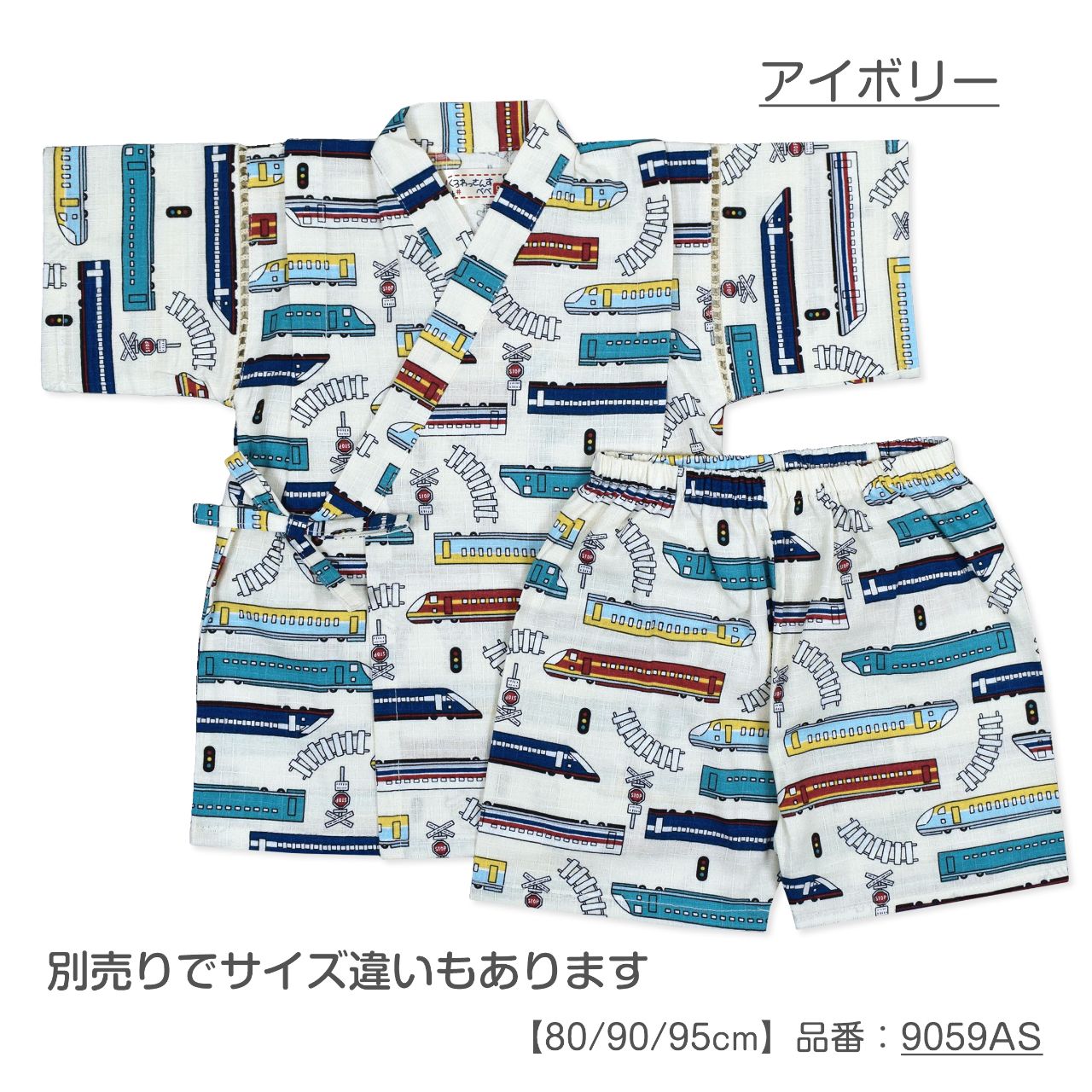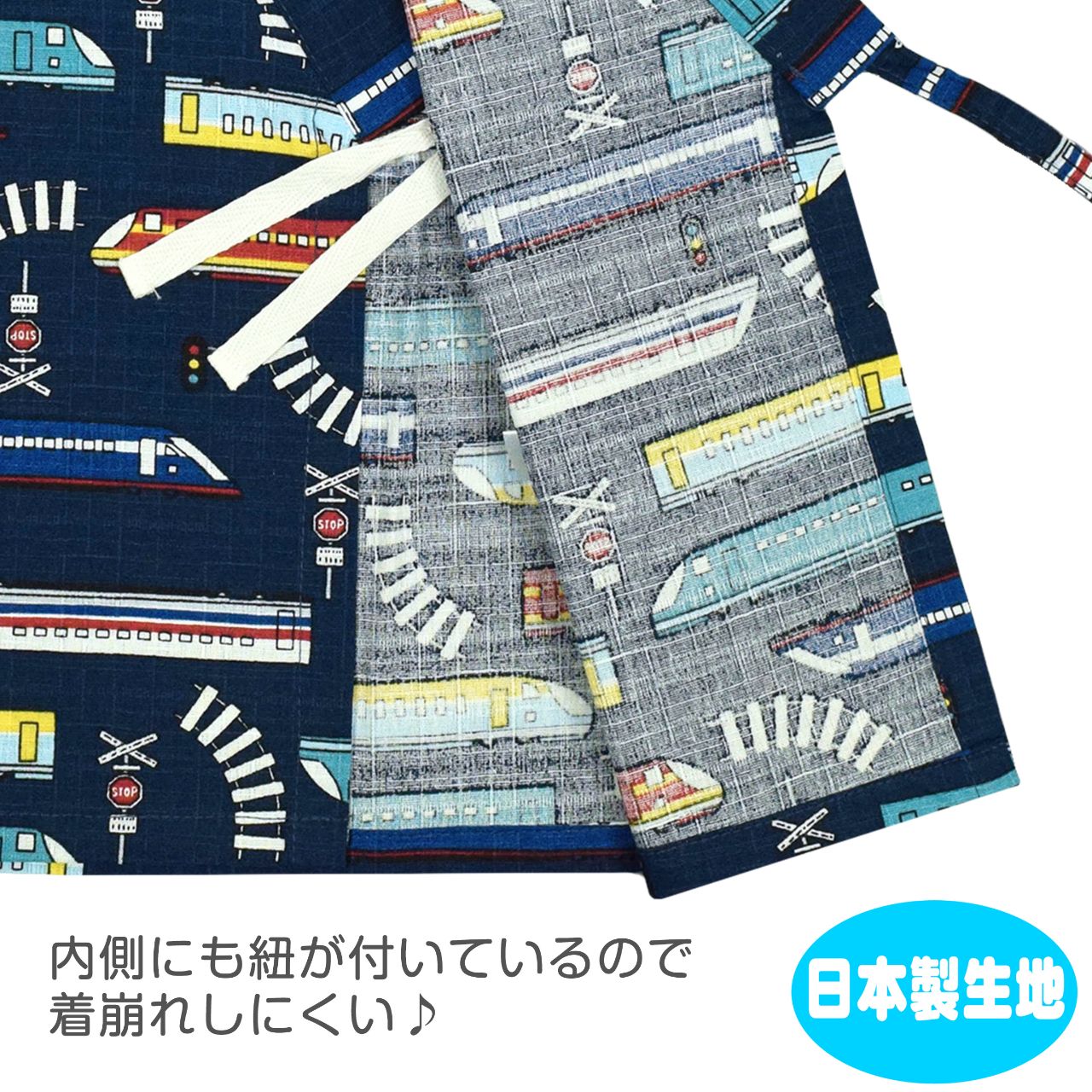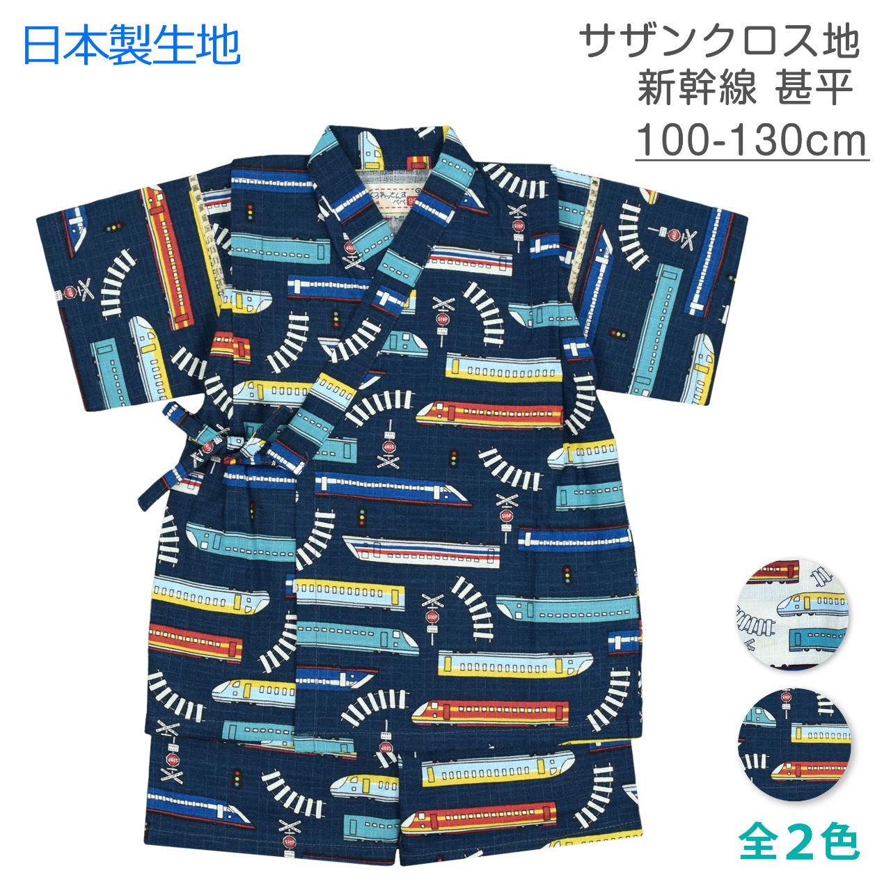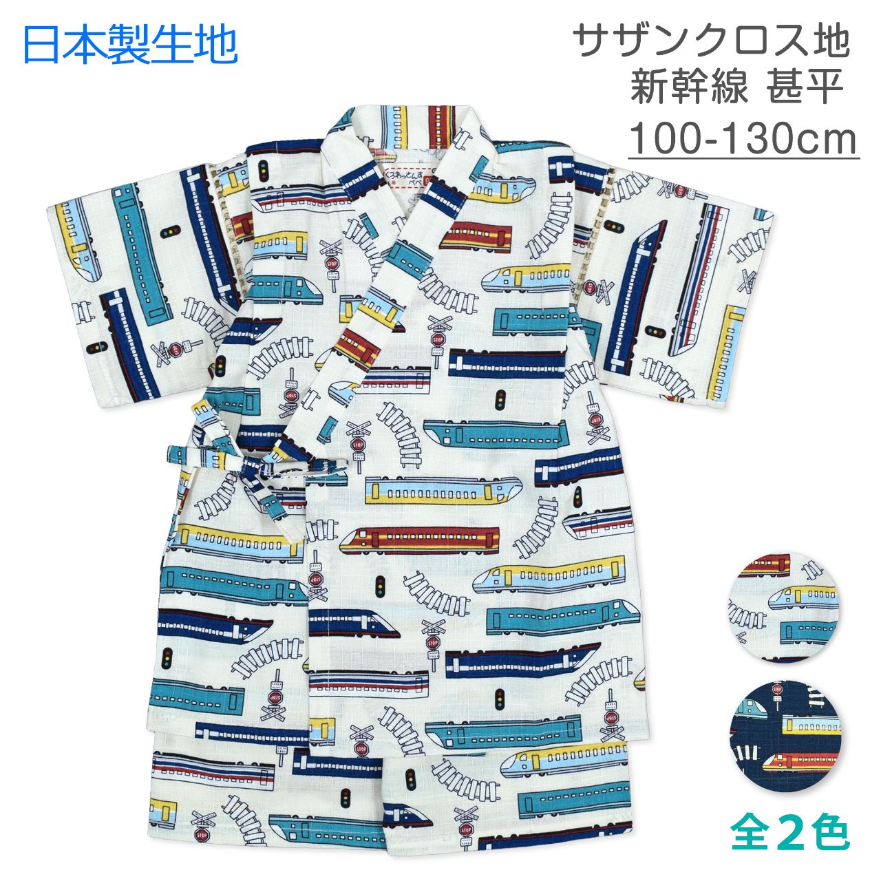 ☆ 商 品 説 明 ☆ 日本製の生地使用 綿100% しんかんせん柄 甚平 。 新幹線柄が 可愛い じん平 上下セット です。安心の日本製、綿100%サザンクロスの生地使用です。パンツ、ウェストはゴム。紐なし。ゴム取換え穴あり。 日本企画・日本製生地使用(縫製中国) *模様や柄の出方は個々の商品によってそれぞれ異なります。
