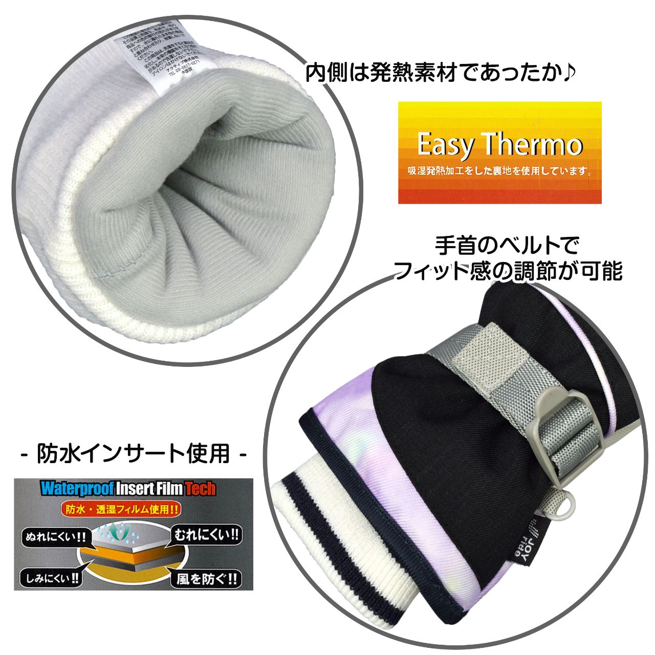 JOY RIDE ジョイライド 子供 ジュニア 女の子 スキーグローブ 吸湿発熱加工 ○ 商品型番:AG-7212AS