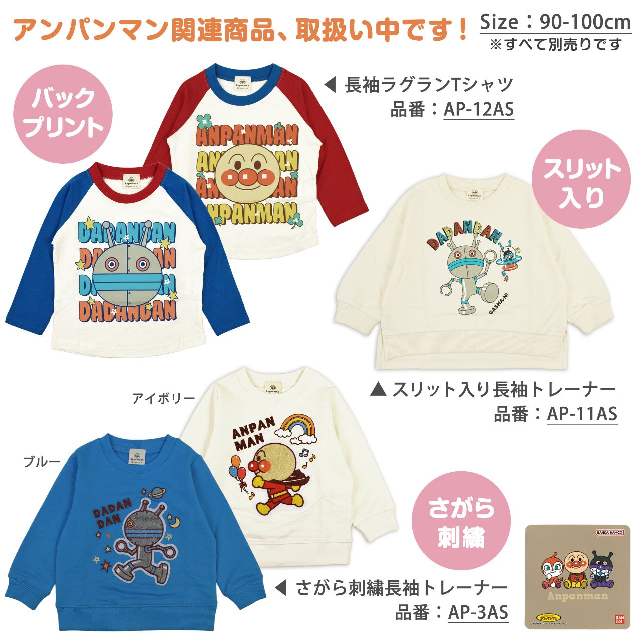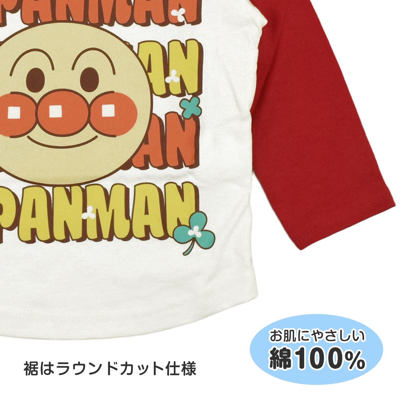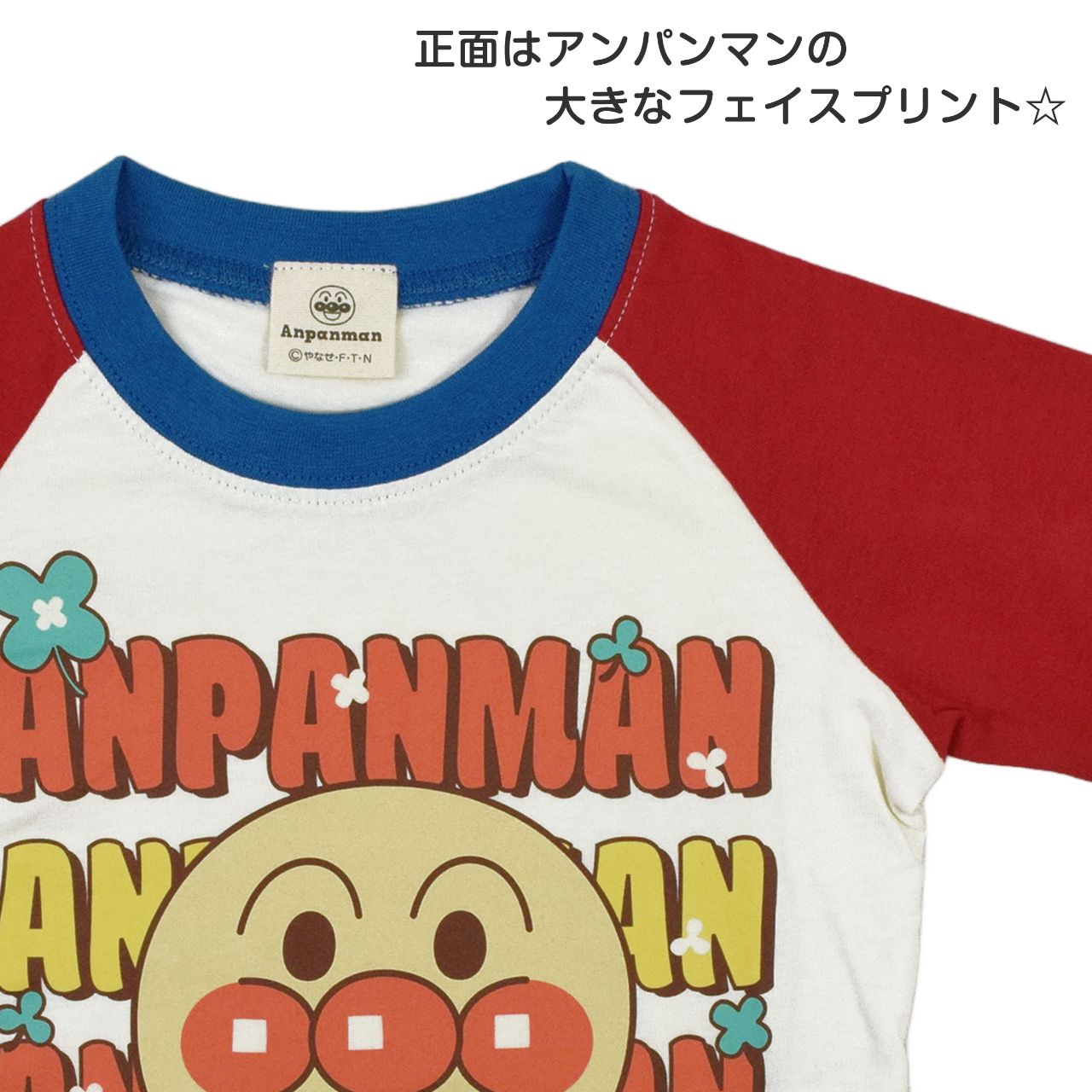 ☆ 商 品 説 明 ☆ それいけアンパンマン 綿100% ラグラン長袖Tシャツ 。 前はだだんだん2号の大きなフェイスプリント。後ろは ばいきんまん アンパンマン カレーパンマン しょくぱんまん ドキンちゃん コキンちゃん ロールパンナちゃん メロンパンナちゃん のかわいいプリント入り。裾はラウンドカットなのでイン、アウトどちらでも着られるおしゃれな カットソーです。お名前タグ付き。