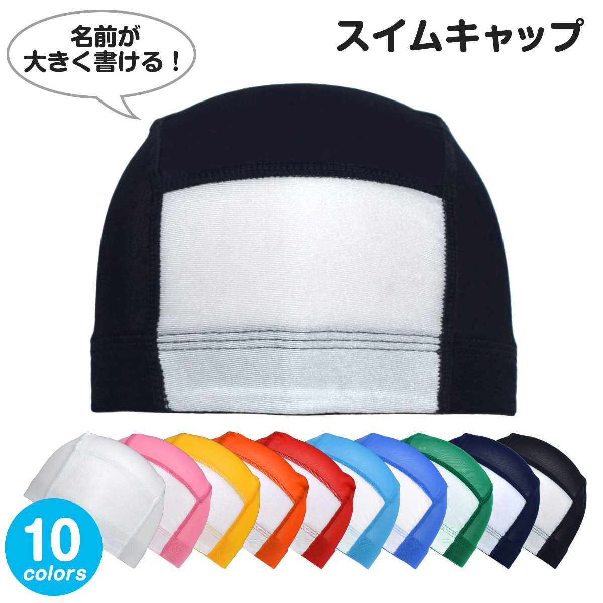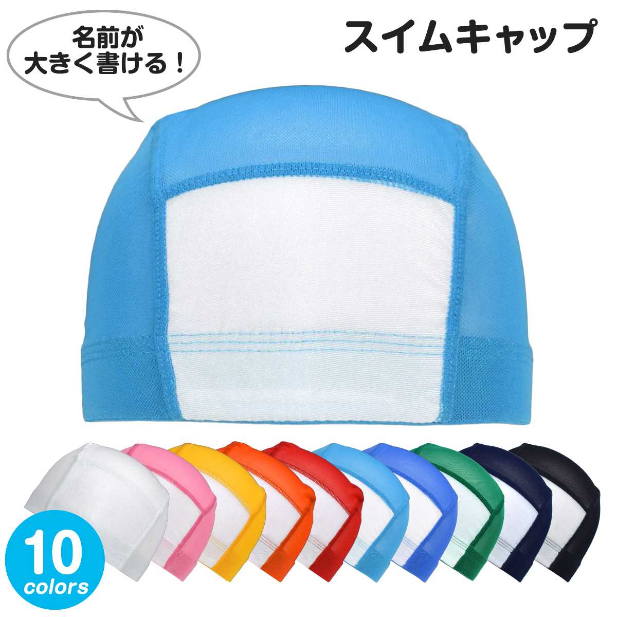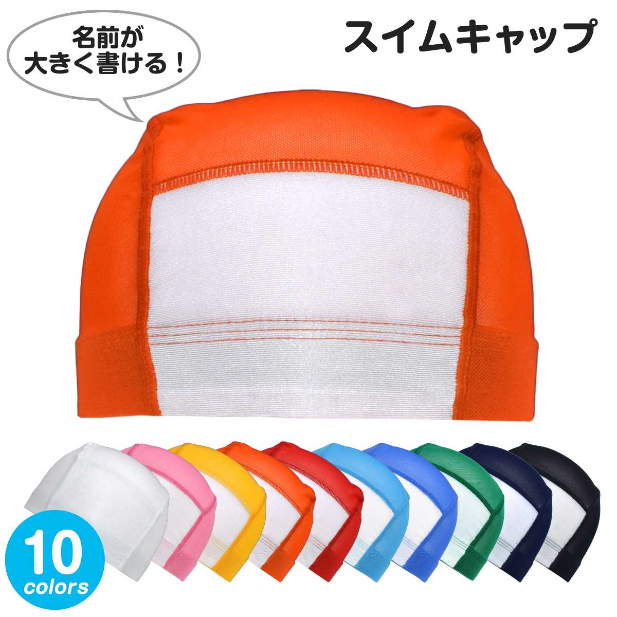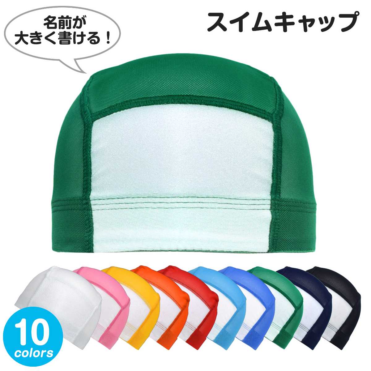 ☆ 商 品 説 明 ☆ 男の子 女の子 兼用 名前の書ける ネーム付き メッシュ 無地 スイムキャップ。 豊富なカラーでお手持ちの水着とも合わせやすいシンプルな水泳帽です。 学校 スイミングスクール プール スポーツセンター には必需品のアイテム。 前面の白地部分にはお名前や学年、クラスなどが大きく書けてとっても便利。 通気性抜群のメッシュ素材で、頭が蒸れにくい快適な着用感。洗濯してもすぐに乾きます。 被り口は平ゴム仕様で伸縮性があり被りやすい。 Lサイズは大人の方も被れるサイズです。 内側にもお名前が書けるネームタグ付き。