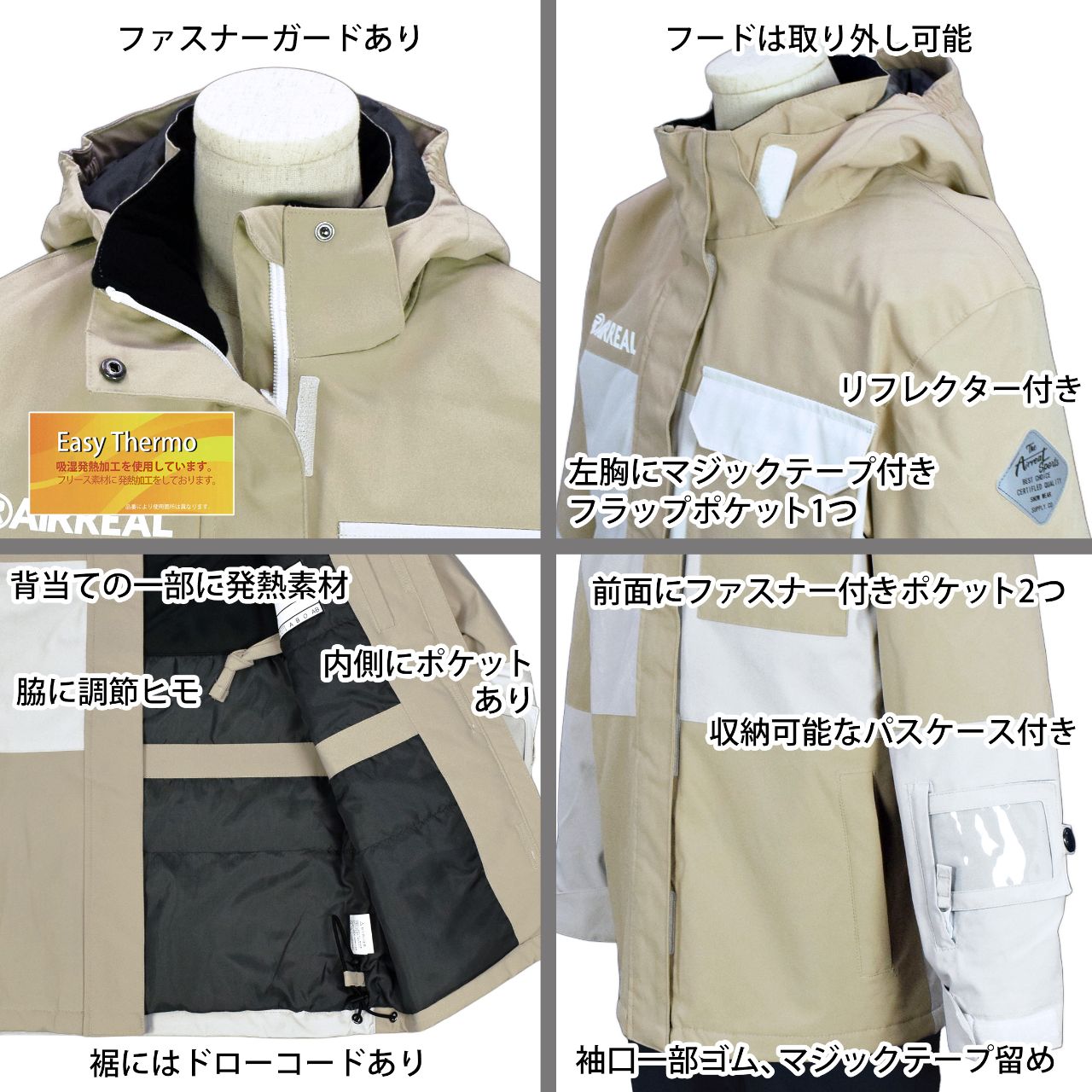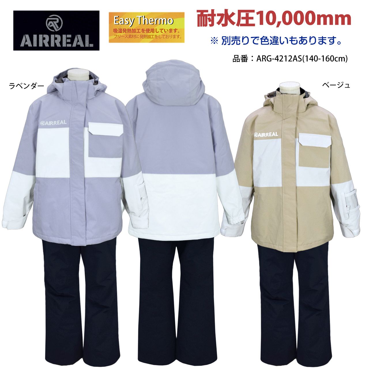 スキーウエア キッズ 子供 AIRREAL 子供 フード取外し可 サイズ調節 耐水圧10000mm ○ 商品型番:ARG-4212AS