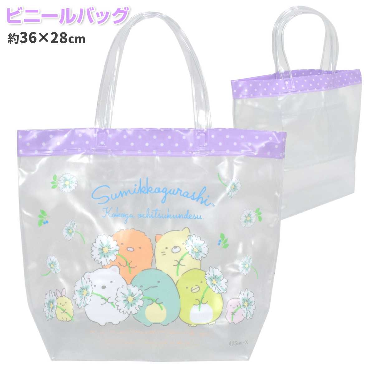 ☆ 商 品 説 明 ☆ San-x サンエックス すみっコぐらし すみっこーで ビニールバック 。 とんかつ ねこ しろくま とかげ ぺんぎん? かわいい プリント入り ビニールトート です。マチ付き でたっぷり収納できるので プール道具やお風呂道具入れなど色々使える バッグ です。内側にポケットあり。お名前スペースあり。
